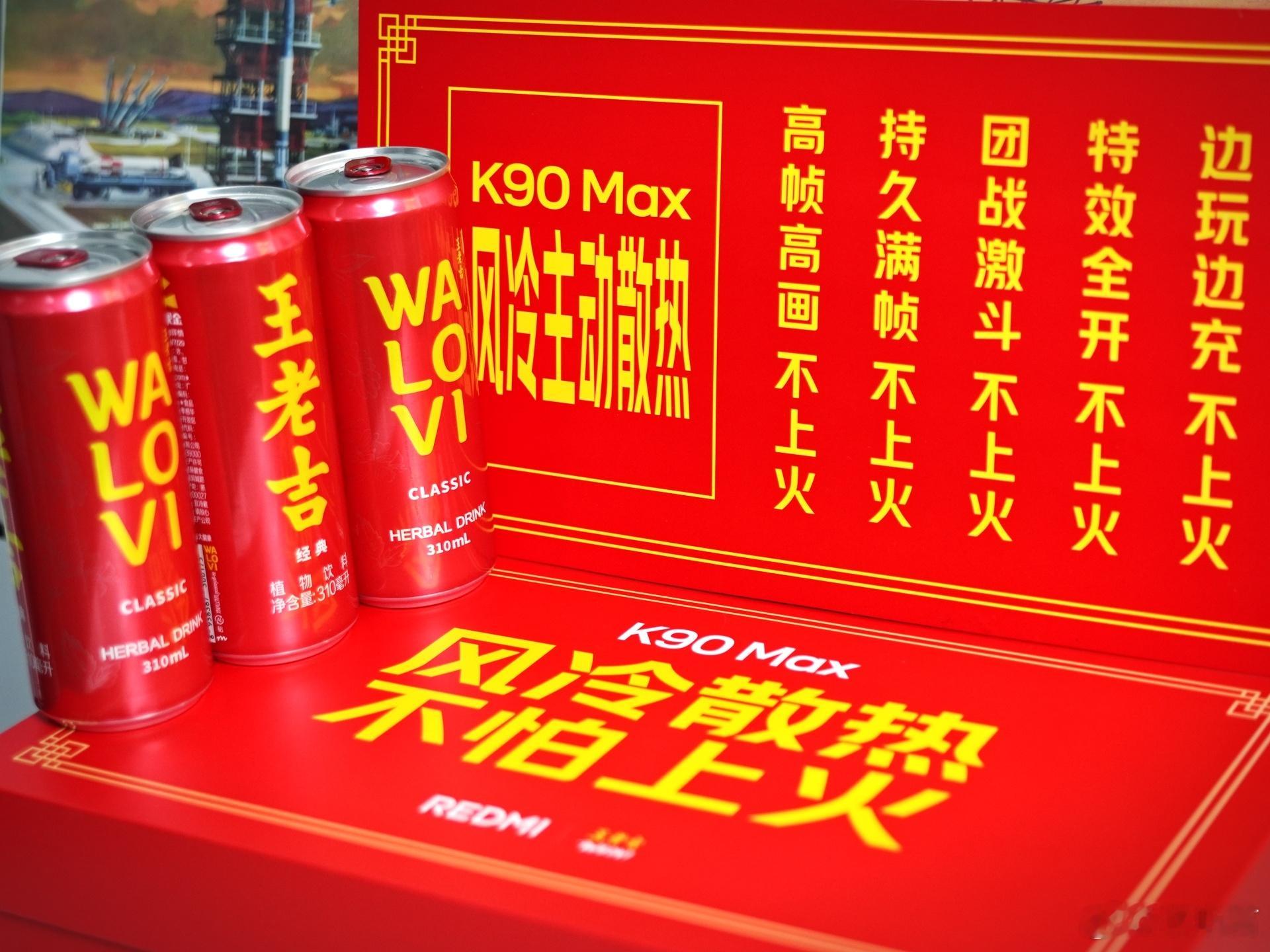 REDMI K90 MAX这次的邀请函意思太直白了,和王老吉联名,主题就八个字:“风冷散热不怕上火”。