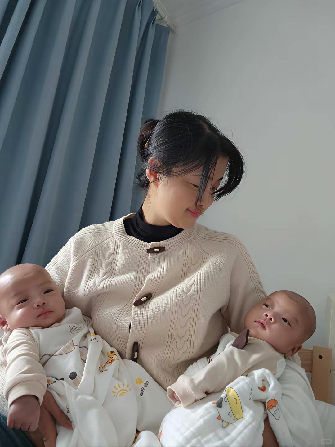 二婚,42岁,喜提双胞胎,左拥右抱,幸福的味道。从画面看两个都是男宝宝。