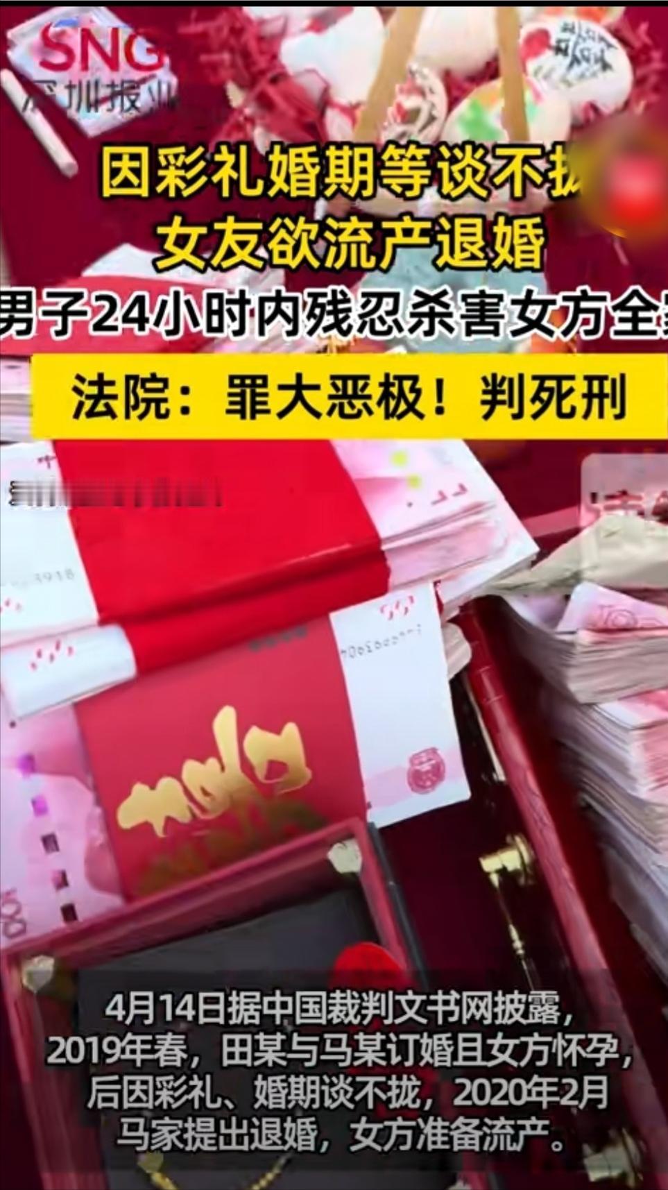 “到底是什么惹的祸?”河北,男子与怀孕女友家因为彩礼、婚期等问题一直谈不拢,出现剧烈争吵。女方父母要退婚,女友也打算终止妊娠。男子失去理智,先后害了女方的父亲与母亲。随后,又要残忍结束怀孕女友的生命,女友以腹中胎儿为由苦苦哀求,男方不为所动,随后造成“24小时3尸4命”的惊天惨案! 河北的寒冬里,2020年2月的一个夜晚,田某站在马某父亲的门前,心里砰砰直跳。彩礼的数字像一把刀,劈开了原本柔软的感情。 对面屋子只剩下马父一人,争执瞬间化作拳头与血痕。田某的手并未抖停,刀光划过,是父亲倒在血泊里。 血味未散,田某匆匆驱车,冲向医院。马母被引出,刀锋划过肩头,随后推向潮湿的水塘,水面掀起的涟漪像是罪恶的回声。 最后,田某把怀孕的马某拽到林中,粗暴地掐住她的喉咙。胎儿的微弱心跳被残酷终结,连未出生的生命也未能幸免。 事后,田某自行走进派出所,递交了自己的血手印。自首的交代写在纸上,却没有减轻法槌的重量。 法院坐在审判台上,翻开《刑法》第二百三十二条,冷冰冰的文字不断提醒:手段极其残忍,情节尤为恶劣,死刑在所难免。 二审的法官眉头紧锁,最高法在审理时点了头—即便有自首,也无法抵消三条命被血腥夺走的事实。最终,死刑的裁决如同寒铁锈在春风里敲响。 社交平台上,网友的键盘敲出了愤怒的句号:这不仅是一次退婚,更是一次血腥的价值博弈。有人问,若自首能够从轻,何以仍是死刑?答案沉默在法庭的铁锤声里。 这桩案件把彩礼这一传统礼节撕成了血肉模糊的伤口。金钱与面子是筹码,价值观的错位让谈判桌变成了决定生死的竞技场。 若再有人把彩礼当作交易的硬通货,若家庭的冲突仍以“退出”来收场,类似的悲剧或将再度上演。危机干预的缺位,情绪管理的欠缺,成了无形的催化剂。 今年,司法机关在案件结束后发布了关于婚恋纠纷预防的指导文件,提醒各地社区设立调解网点,提供情感与法律双重支持。 然而,一纸文件无法抚平马家失去女儿与外孙的伤口,也挽不回田家的唯一儿子。两段家庭的碎片化生活,仍在无声的岁月里发酵。 从这起血案可见,法律的天平虽坚硬,却也需要在社会结构的每一根支柱上添砖加瓦。否则,单纯的裁决只能是末路上的灯塔——照亮的,却是沉船的海面。 我们在咖啡桌旁聊起这件事,大家不禁皱眉:如果当初有个及时的沟通平台,或许不会走到枪口。 结局已定,死刑已下,然而对彩礼背后那层深埋的情感与责任的审视,才是这桩悲剧唯一值得延伸的思考。 信息来源:《因彩礼谈不拢女方欲退婚流产,男子随后杀害怀孕女友全家,法院:手段残忍,情节恶劣,死刑》大象新闻