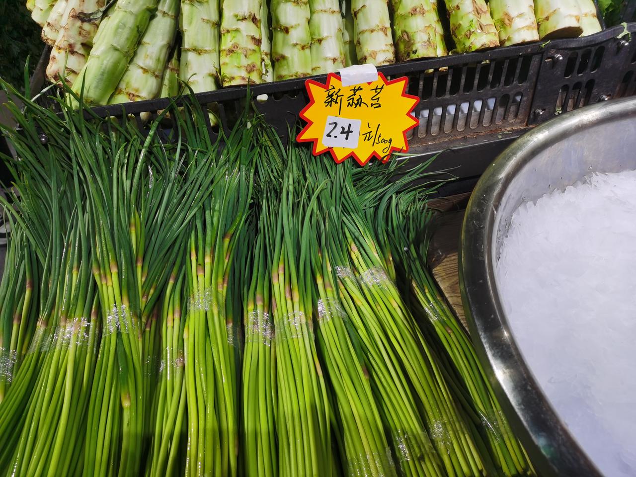 看看郑州今天的蒜苔便宜啦一天一个价 刚去超市里买菜,新鲜蒜苔卖2元4毛一斤, 黄瓜2元2毛一斤,西红柿2元9毛一斤, 大葱一元2毛一斤, 紫圆茄3元3毛一斤, 青茄子2元6毛一斤, 大白菜1元2毛一斤, 韭菜1元8毛一斤, 小葱2元一斤, 豆角4元4毛一斤, 青菜1元2毛一斤, 荆芥4元2毛一斤, 青芛1元5毛一斤, 西葫芦1元6毛一斤, 螺丝椒4元8毛一斤, 榆钱4元5毛一斤, (首发原创)(4月6号)