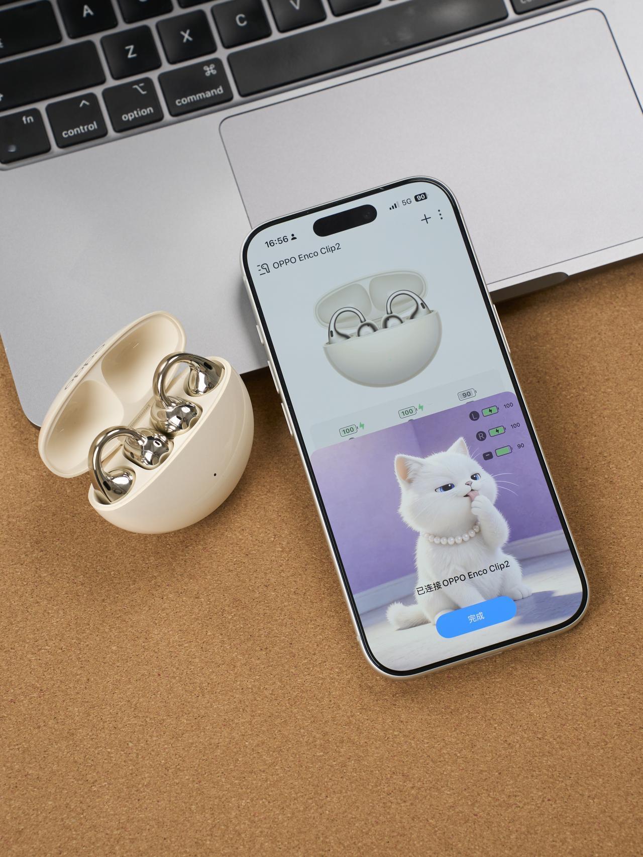 AirPods先歇会!果粉第一次用OPPO耳夹耳机... 作为一个用了好几年iPhone的“钉子户” 最近被OPPO Enco Clip2耳夹耳机狠狠种草了! 第一次用这种耳机 只想说OPPO用户吃得是真好哇🍋 🎧OPPO Enco Clip2颜值确实戳我 高光金配色像个小耳环,好看精致 佩戴感更哇塞,单只只有5.2克,像戴了个耳饰 夹得很稳又完全不痛,戴半天经常忘记摘 之前总担心安卓耳机连iPhone会各种不适配,结果完全打脸 连接超稳,蓝牙6.1基本没断过 还能同时连我的iPhone和iPad 开盖就有弹窗,下载个APP就能自定义动画,仪式感拉满👍 🎵音质也不错,丹拿联合调音+Hi-Res小金标 听人声特别清澈通透,低音也够劲 完全不是那种“听个响”的开放式耳机 👀以前觉得AirPods Pro就够了,现在真香了… 这种无感佩戴+好音质+智能交互的体验 苹果用户终于也能拥有了!👭 iPhone果粉OPPO Enco Clip2数码爱好者