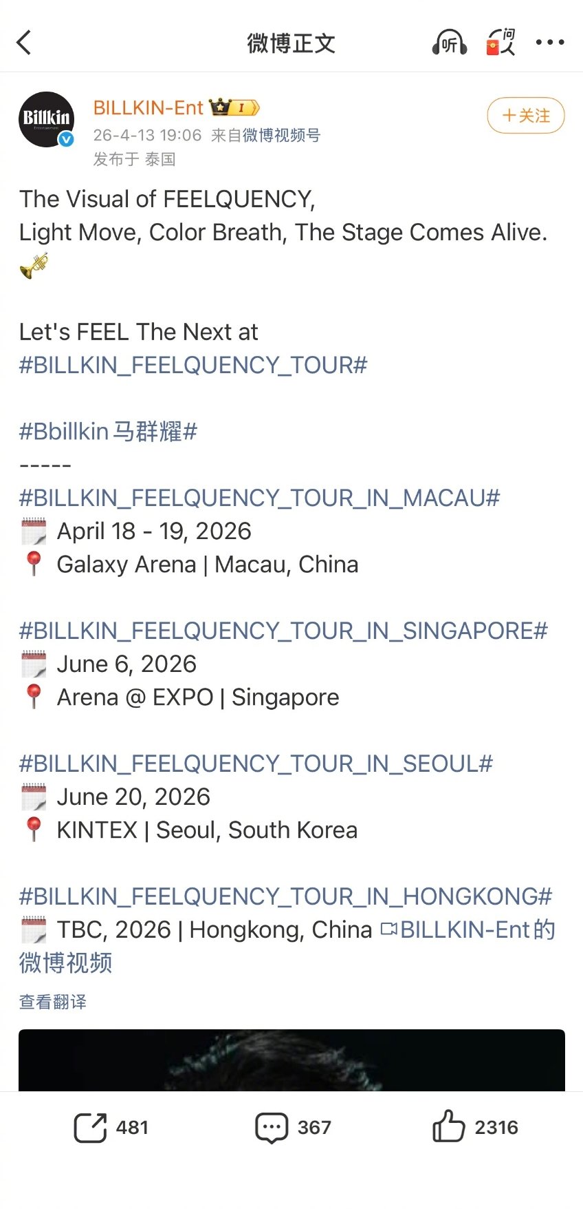 马群耀首尔演唱会官宣BILLKIN首尔浪漫相遇马群耀演唱会官宣首尔