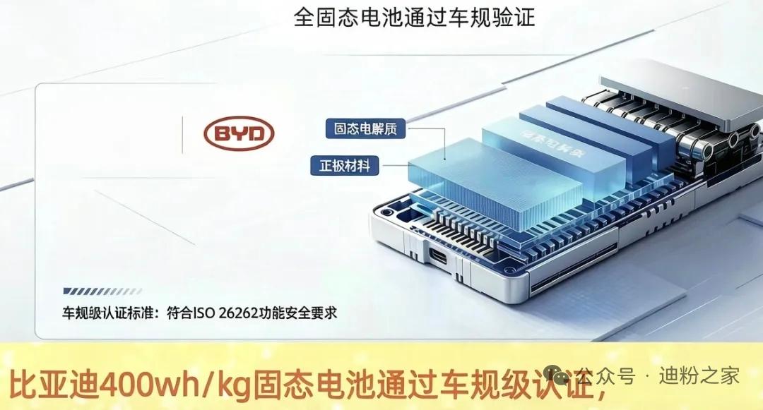 近日,据迪粉之家的消息,比亚迪全固态电池已通过车规验证,容量为400wh/kg,小批量生产的日期定在了2027年。 目前,这款电池已正式迈入中试量产阶段。中汽研出具的权威报告显示,这款电池通过全项车规级安全与可靠性测试,搭载它的原型车CLTC综合续航达到1218公里,创下国内固态电池续航新纪录。【来自懂车帝车友圈】