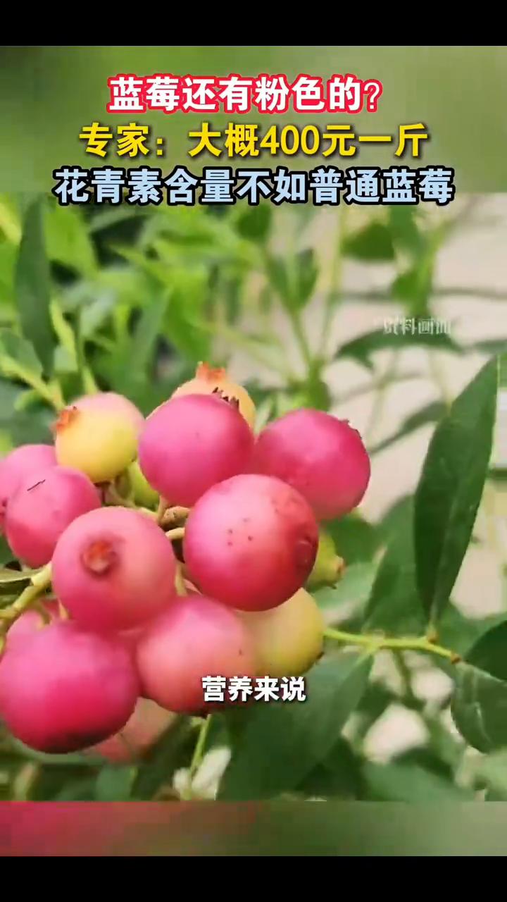蓝莓还有粉色的?专家:大概400元一斤,花青素含量不如普通蓝莓。 四川农科院经作所蓝莓创新团队陈昌琳。 粉色蓝莓就是通过选有粉色基因的(种),通过几代的杂交选育出来的,价格大概到了400块钱一斤左右。作为商业种植还很少,在云南那边只有小部分的试种。营养来说其实并没有特别的优势,普通的蓝莓可能花青素含量还要高一点。