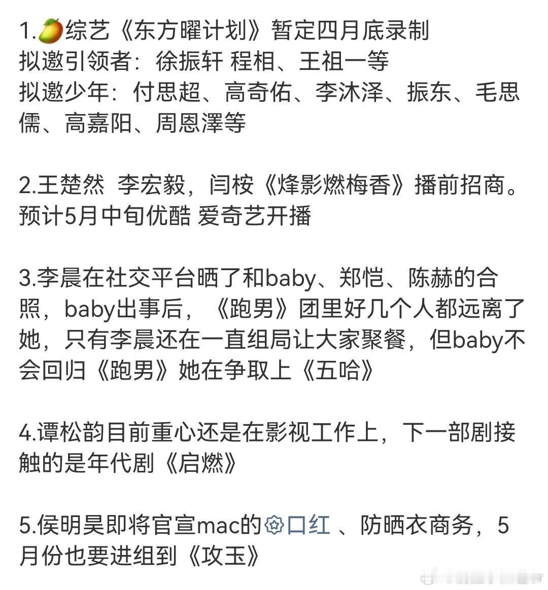 4.16圈内小🍉1.李宏毅 参半 4.22官宣2.杨幂 溜溜梅回签3.时代少年