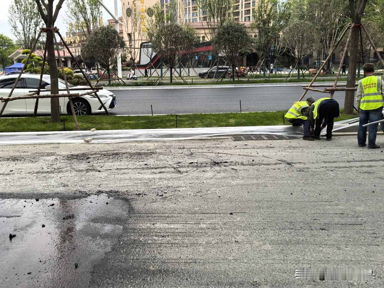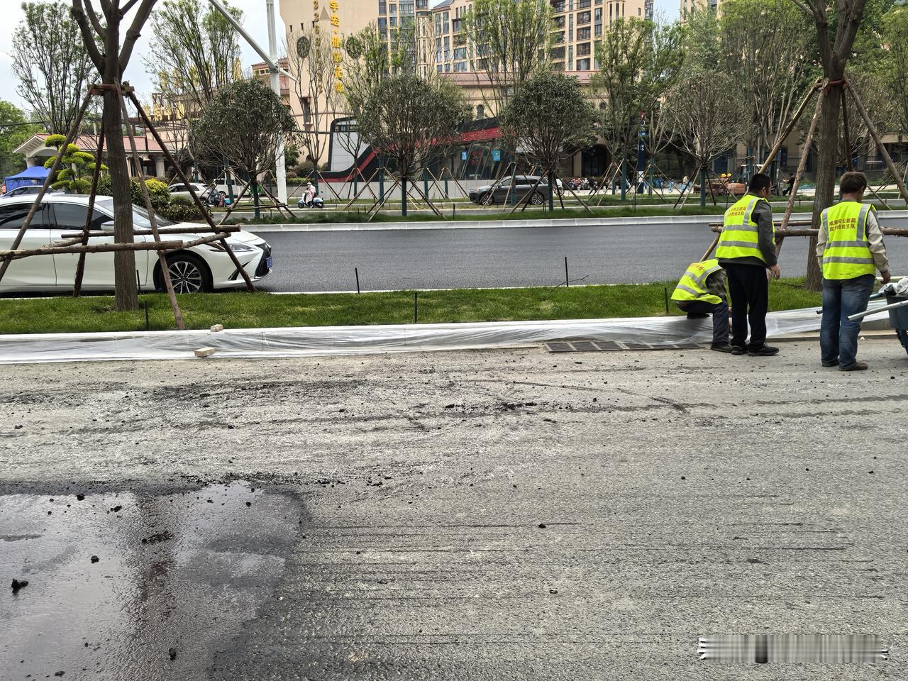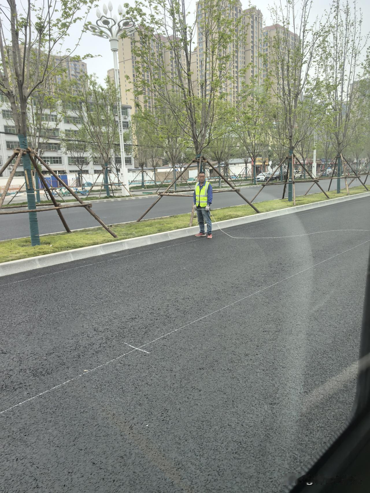 昨天,在咸阳安谷地铁站口,小编同样看到这些穿绿色工服的工人,正在给路面的道沿上铺塑料。过了一会儿,小编看到一辆机器给地面上喷油。这些喷到路沿上的棕色油,恰好被那些刚铺的塑料把路沿上的石材很好的保护起来。 今天,小编再次路过咸阳陈阳寨站地铁口,看到路面上已画好了白色的道路分隔线,很醒目。 像这些辛勤工作的人员致敬。他们让世纪大道变得更好,更通畅,更漂亮。
