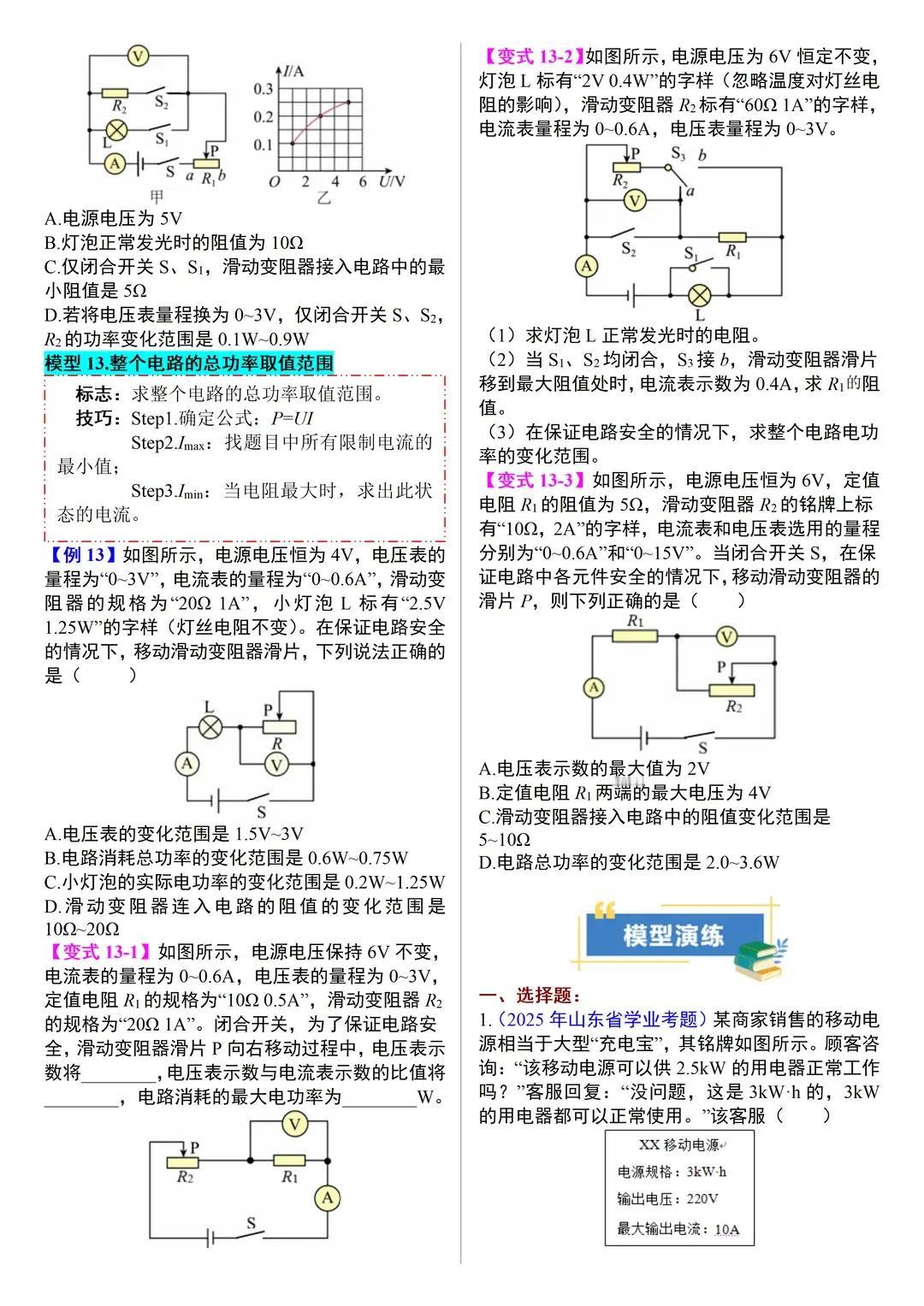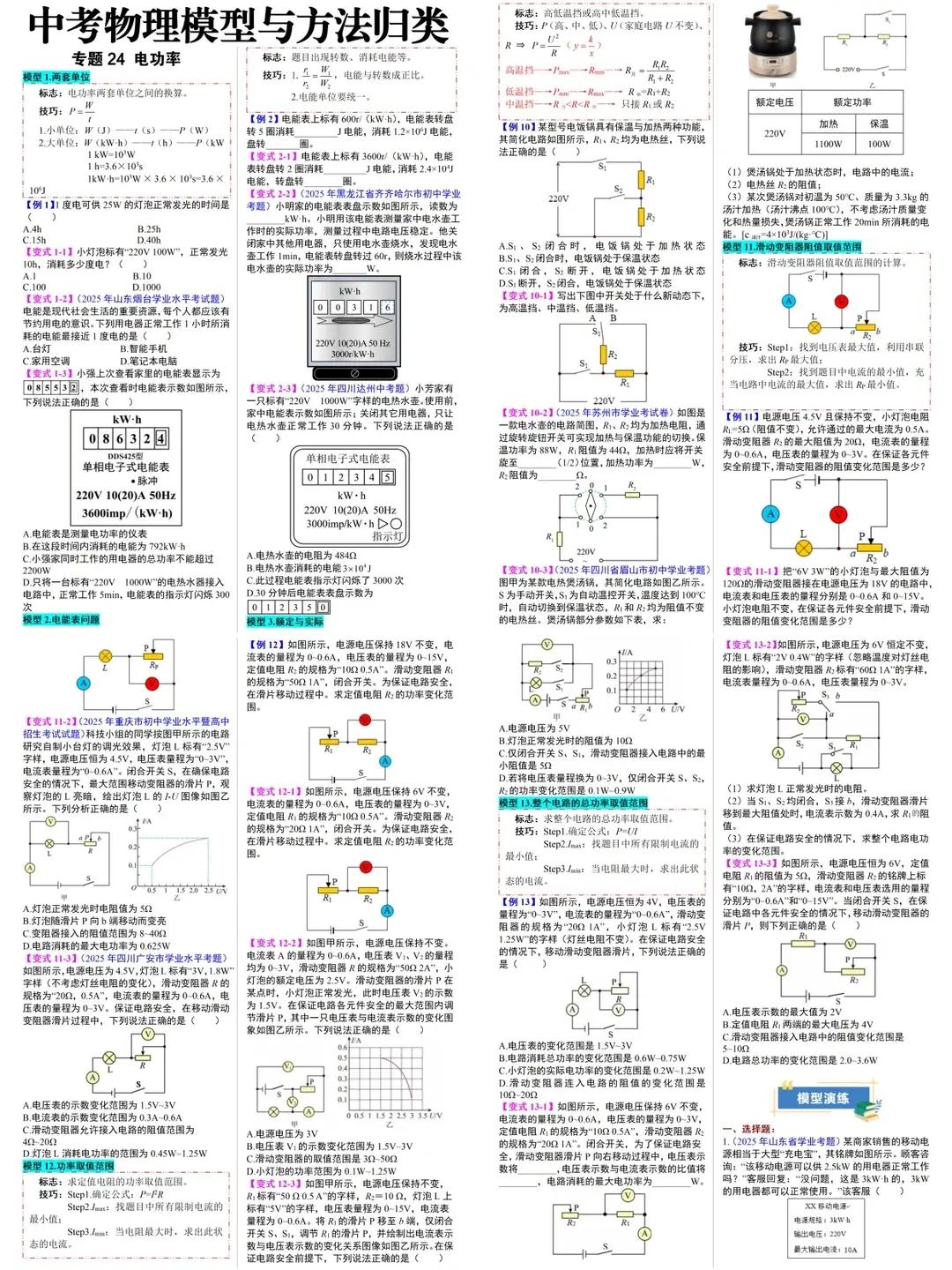 中考物理模型与方法汇总,电功率模型汇总
