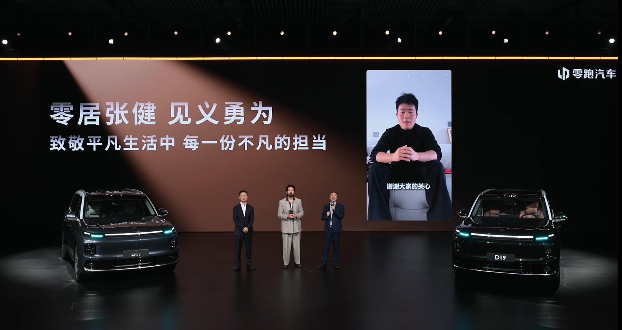 第一辆零跑D19,交付给费翔先生。第二辆零跑D19,交付给见义勇为车主张健。