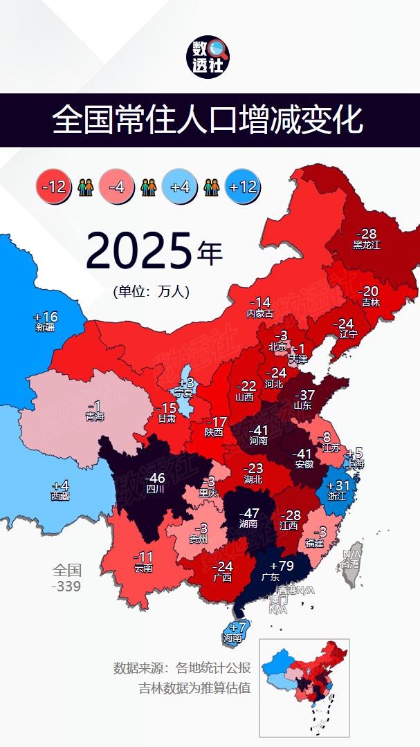 全国各省常住人口增减变化