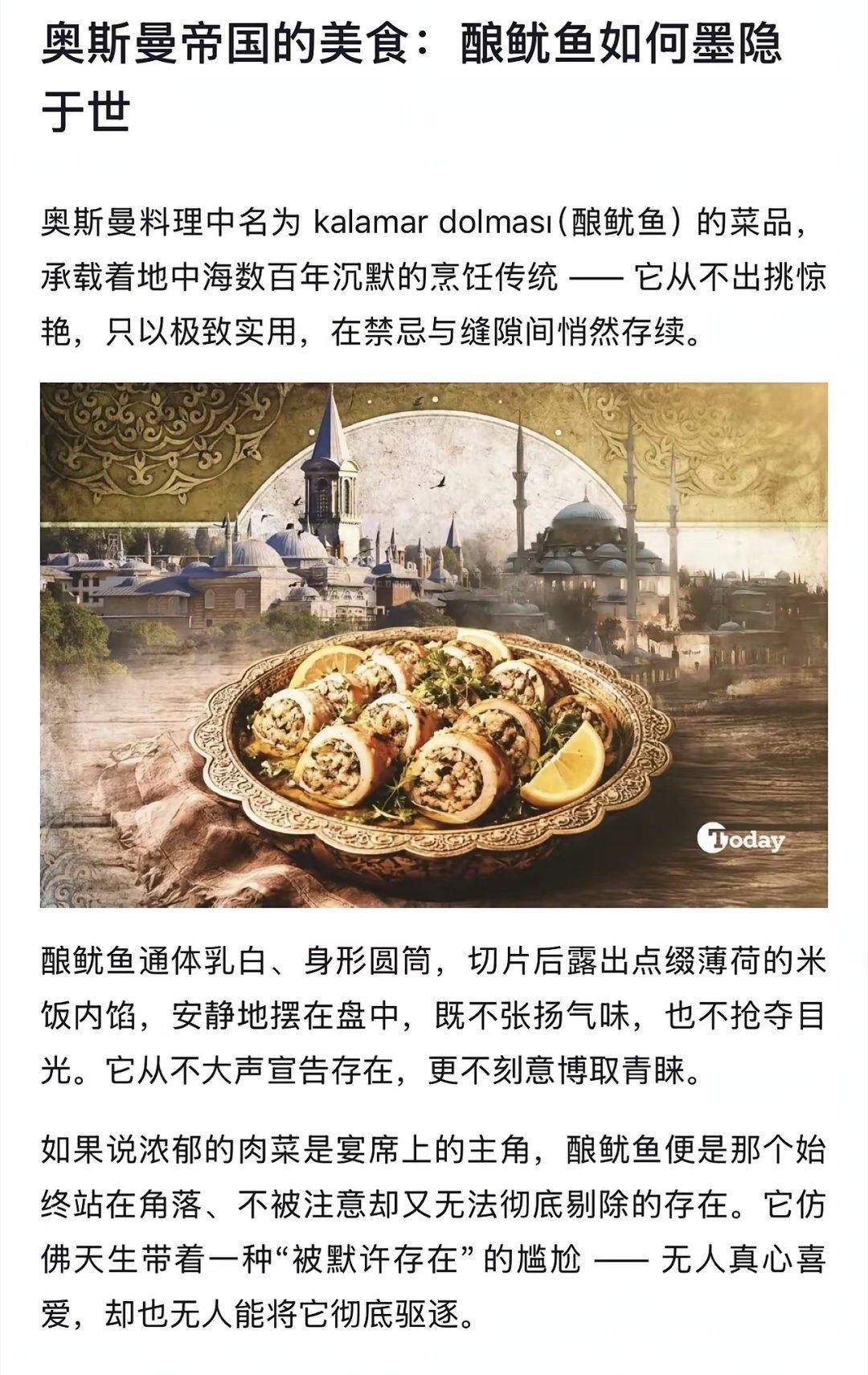 土耳其驻华大使馆:“奥斯曼帝国的美食:酿鱿鱼如何墨隐于世”,土耳其这是深谙中文的精髓啊!