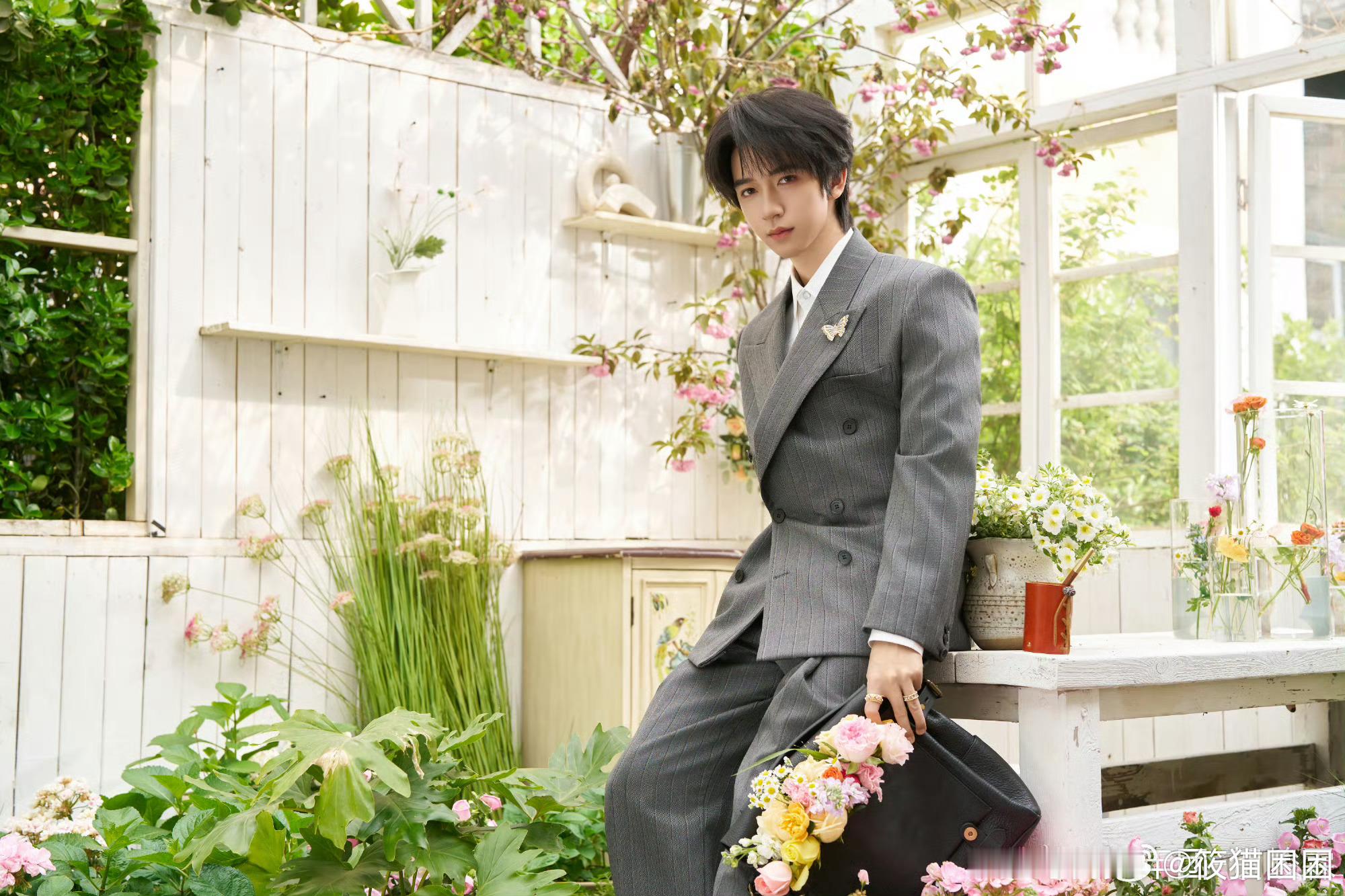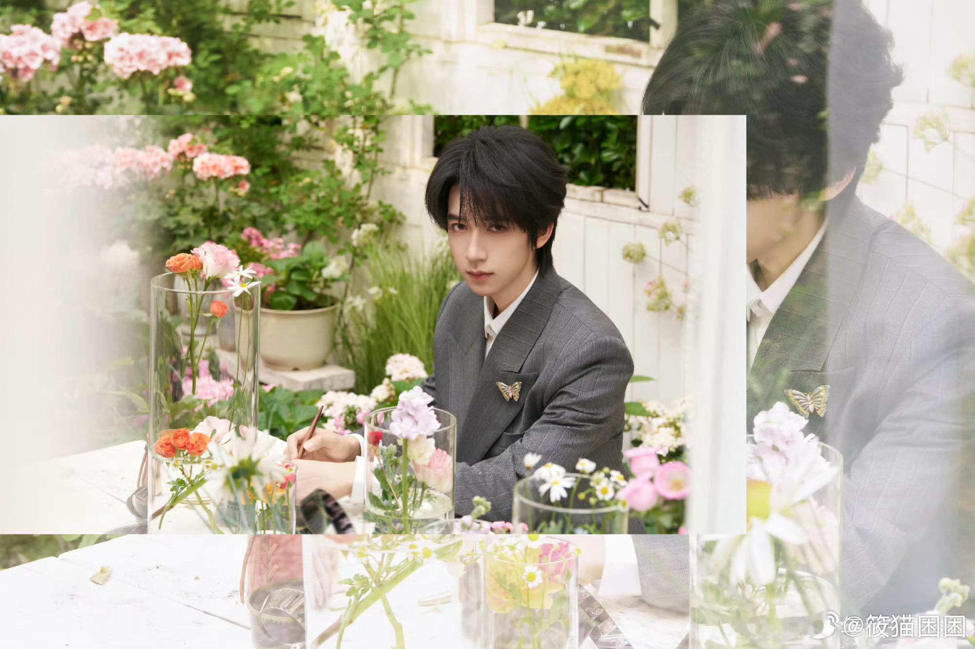 贺峻霖贵气感 救命 贺峻霖这组真的杀疯了 灰色西装衬得人清冷又贵气 花园里的样子简直是从画报里走出来的 每一帧都精致得不像话 太绝了 贺峻霖北影节常客贺峻霖北影节状态