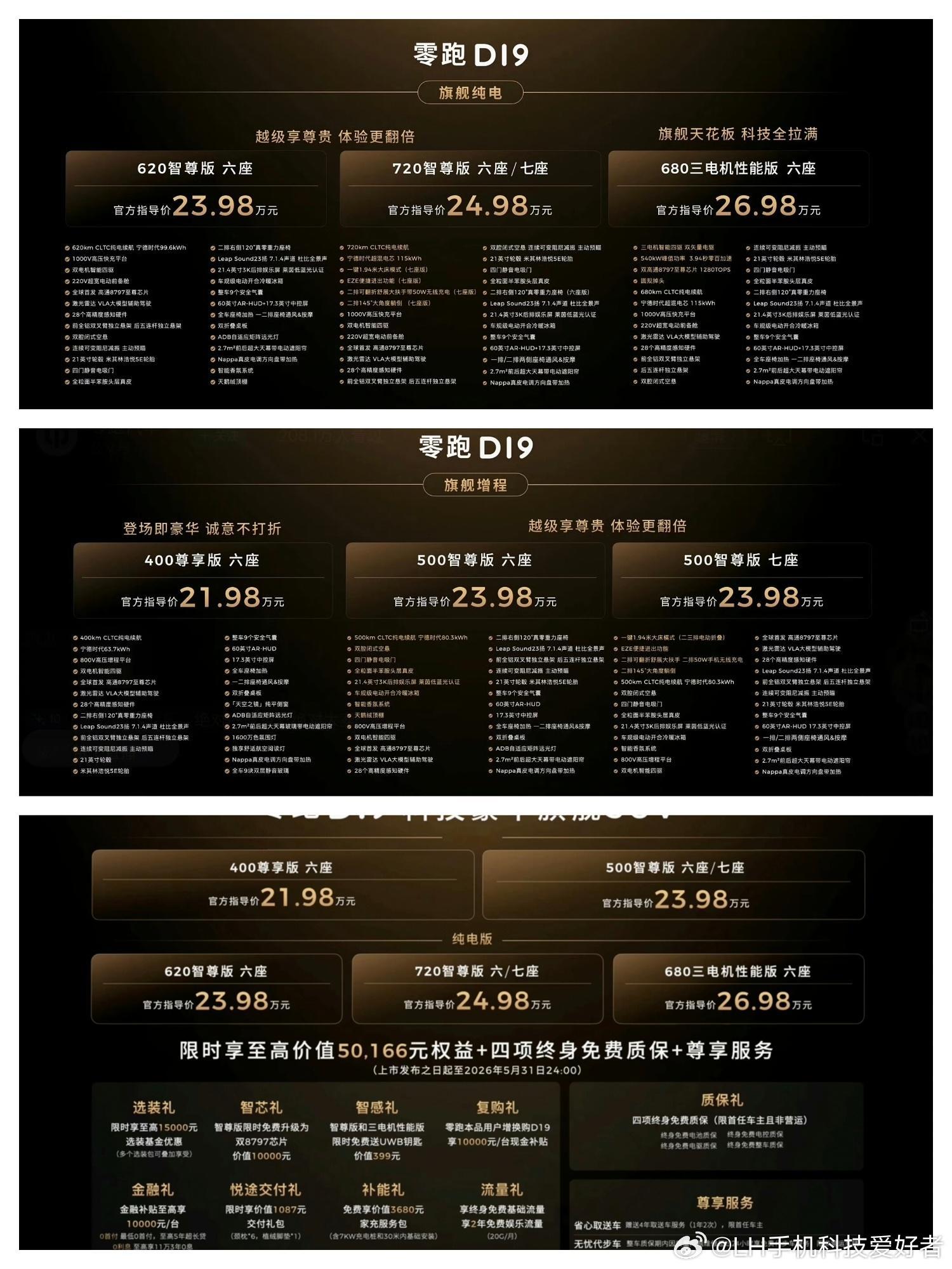 零跑D19增程版售价21.98万、23.98万、26.98万元;