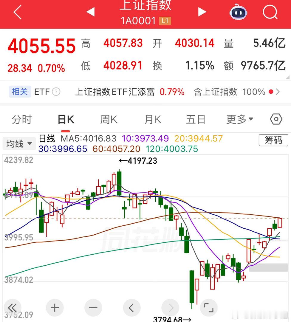 均线呈收敛状态:上方60日线承压,下方10/20日线支撑上移,逐步汇合。反弹未结束,重点盯60日线与4011点位。