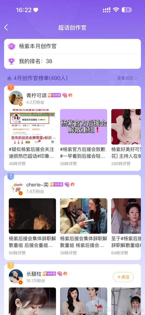 好久没有上杨紫超话创作官榜了,继续努力,加油加油冲啊!为了我的小猴子杨紫