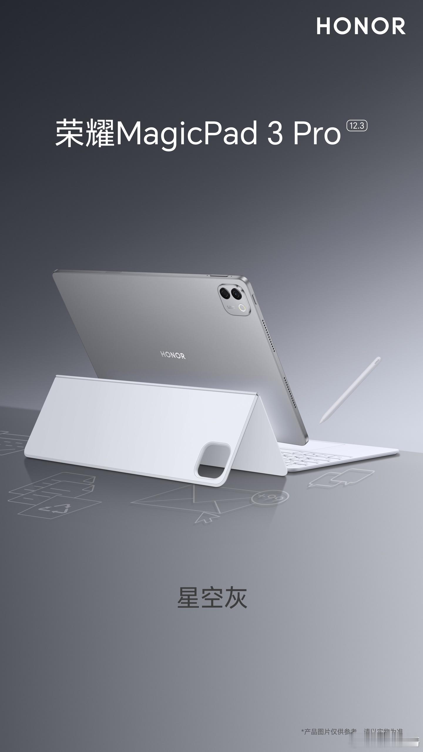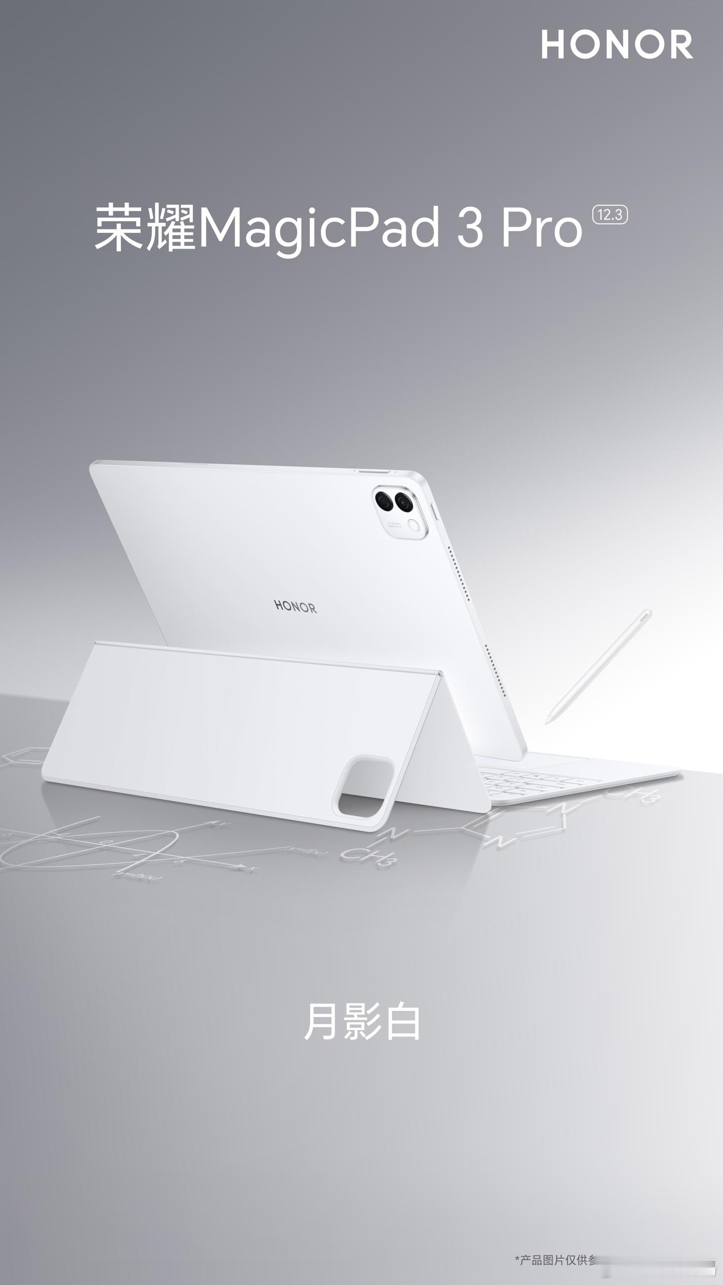 【荣耀 MagicPad 3 Pro 12.3 英寸平板月影白 / 星空灰配色亮相:全金属一体化设计,4 月 23 日发布】