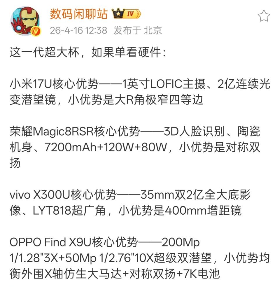 小米荣耀OV这代超大杯,大家更喜欢哪个?
