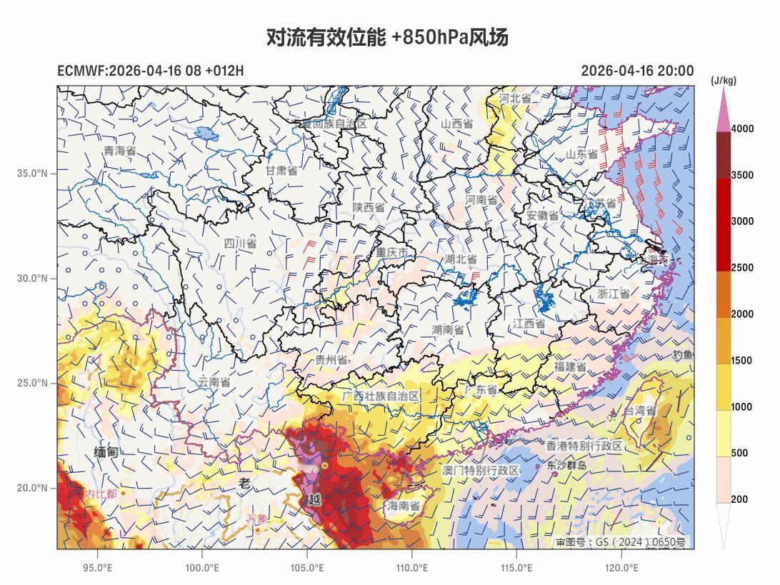 预计4月17日20时至18日20时,福建中东部、广东中北部、海南岛等地的部分地区将有强对流天气。预计4月18日20时至19日20时,四川东部、重庆中西部、贵州、云南东南部、广西等地的部分地区将有强对流天气。从目前形势看,19日下午-夜间,重庆、贵州、广西一带,可能出现高空冷槽配低空偏南气流的垂直结构,这样上干冷、下暖湿,很容易引发雷暴大风、冰雹,后期需要关注临近预警预报。