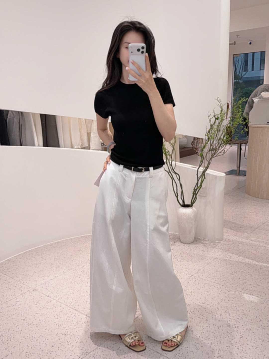 简约高级的穿搭范本极简主义,从容氛围感。这套穿搭主打不费力的高级感。借鉴图中逻辑,主体选用黑白灰纯色系列,去掉多余印花,追求视觉干净。上装建议选择合身的针织或简约T恤,版型利落不紧绷;下装搭配垂感极佳的白色阔腿裤,显瘦又显气场,轻松拉高比例。整体风格偏向知性与松弛,适合通勤也适合街拍,任何细节都藏不住这份耐看的精致