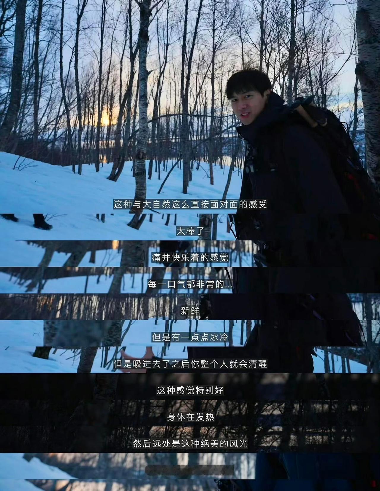 刷到李现和links的挪威旅行vlog,一个小时的记录片,涤荡心灵的美,真实又虚幻,静美又盛大,北陆之巅,无人之境,皑皑白雪,世界尽头,人生海海,热泪盈眶! 当李现下车看到山顶的一幕惊呆了,极光在挪威的夜空肆意舞动,绿紫色的光带像大自然挥舞的丝带,那种震撼是人生级别的丰收吧,是永生难忘的喜悦吧。他说这是他过去人生34年里独有的体验。站在雪地里,仰头望着,眼睛亮得像装了星星,这一刻就是活着的意义。 后来登顶雪山那段更戳人,风刮得他们脸通红,呼吸都带着微颤,可他们一步一步往上爬,攥着冰镐咬着牙,到顶时对着群山与大海呐喊,那股拼劲,像是回到自己曾经那个理想的自由少年应该活出的模样。Links说,我们一路在寻找某种意义,但很多事情并没有答案,去经历,寻找答案的过程就是答案本身。 他们在旅行中也遇到很多计划赶不上变化的事情,突然的雨天,打乱的行程,就像人生中所有的节外生枝,事情往往不全按着你的计划走。 他说:“但这个不是我能控制的,就像农民伯伯也没办法控制天气,干旱、暴雨、洪涝,走的每一步都是全新的体验”。好的心态去面对和应变极为重要。他们在计划一个目的并前往那个目的地的旅程中,总会有许多不期而遇的惊喜。踩在厚厚的雪上往山顶爬,每一步都不确定雪有多厚,脚会陷多深,像极了人生中那些未知的探险和意想不到的缘份。 人生就是旷野。 穷游富游都不如趁着年轻的少年游,他们的人生也因为有了这些体验而变得丰富,并且带给那么多像我一样坐在格子间走不出去的人一丝向往与希望。世界那么大,背上包就可以出发。 等以后我的孩子长大,我也想跟他说:别总盯着书本和工作,去看看山海,去吹吹不同地方的风,那些没计划的意外,那些翻山越岭的瞬间,才是最鲜活的人生。
