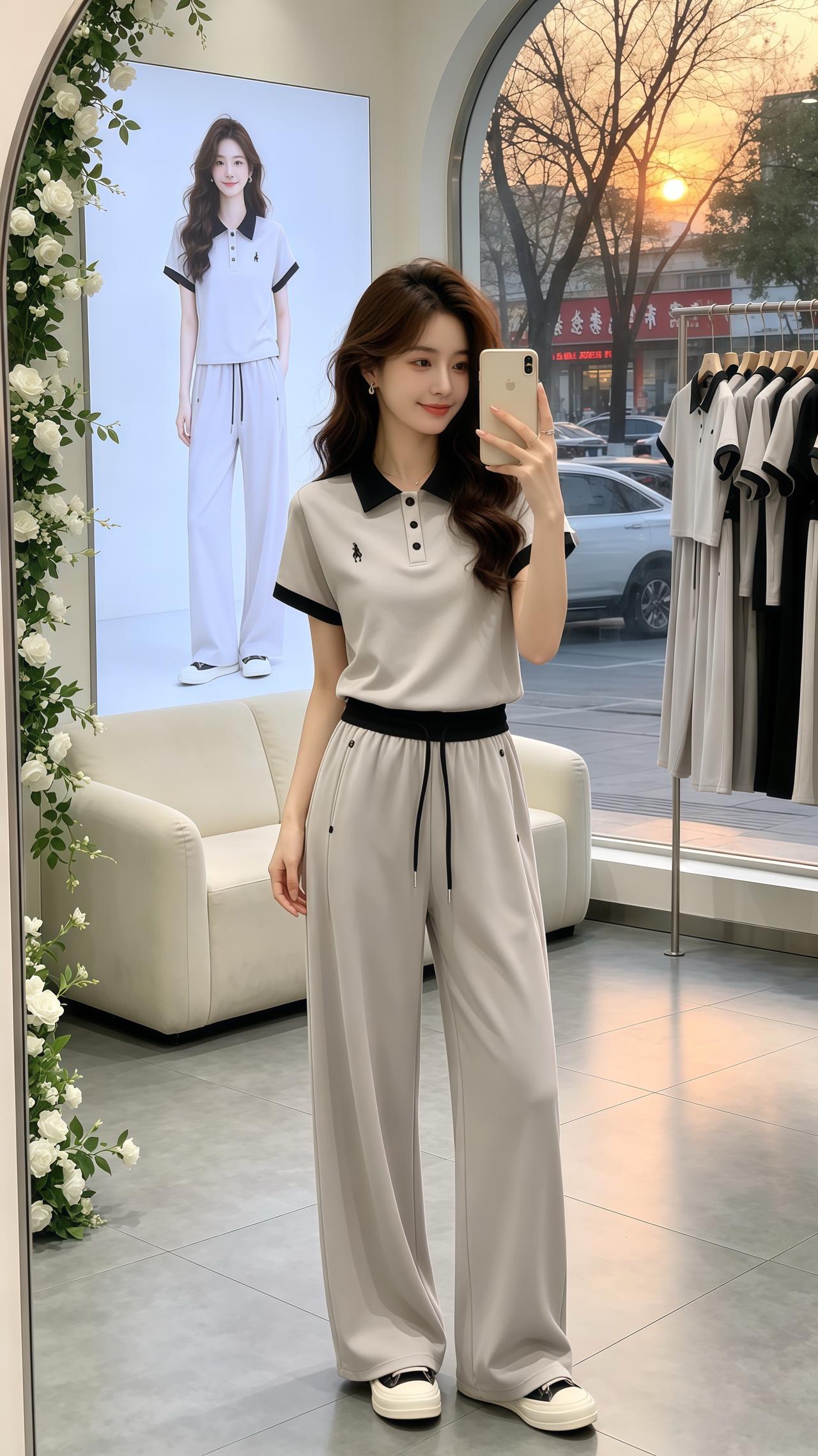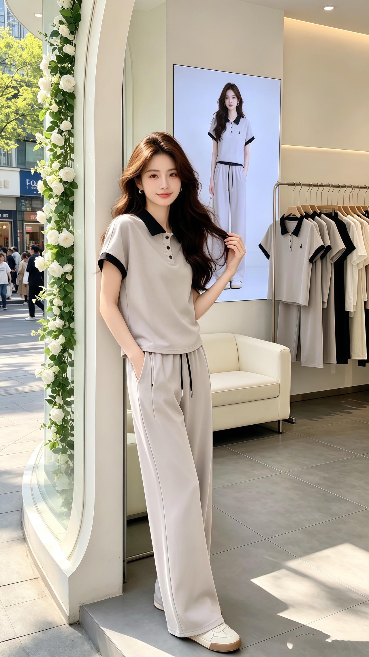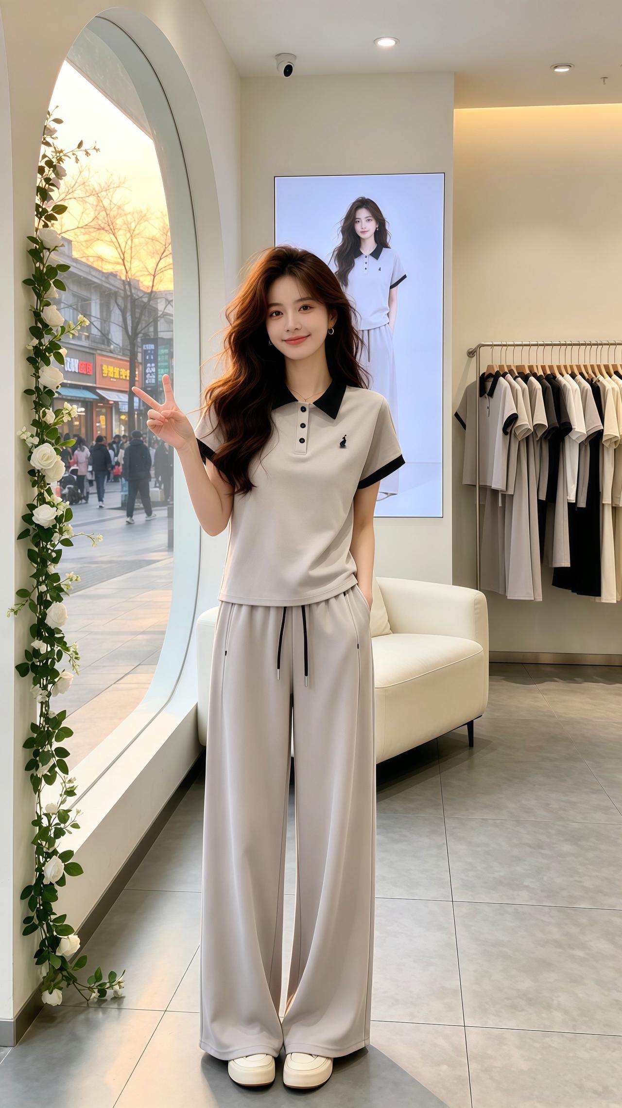 休闲阔腿裤套装 休闲百搭 洋气减龄