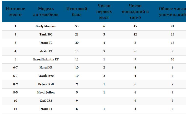 俄罗斯评出年度最佳中国车!吉利 Monjaro (吉利星越L)夺冠,坦克 300、捷途 T2 (捷途旅行者)紧随其后。 俄罗斯汽车媒体《中国汽车》完成了年度行业投票,邀请 50 位资深汽车记者、车评博主评选2025/2026 年度俄罗斯最佳中国汽车,最终 吉利 Monjaro(星越 L 以 33 分拿下总冠军。 最终 TOP10 吉利Monjaro — 33 分 坦克300 — 21分 Jetour T2 — 20 分 Avatr 12 — 15 分 星途 ET — 12分 哈弗H9、Voyah Free — 10分 Belgee X50、Haval Jolion — 9分 广汽 GS8 — 9 分 各细分级别 “冠军” 最佳 SUV:吉利 Monjaro 最佳硬派越野:坦克 300 最佳纯电:阿维塔 12 最佳混动:星途 Exlantix ET 最佳轿车:阿维塔 12