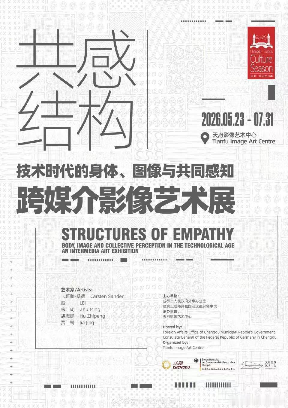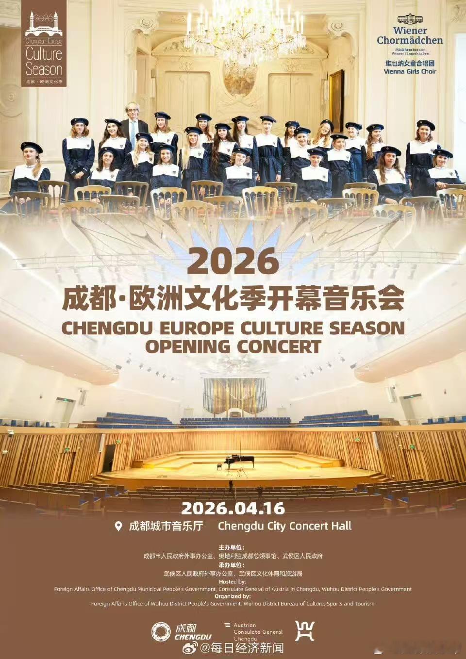 【2026成都欧洲文化季正式启幕 】4月16日,备受成都市民喜爱和期待的“2026成都·欧洲文化季”在成都城市音乐厅拉开帷幕。据悉,“2026成都·欧洲文化季”将邀请奥地利作为主宾国,携手蓉奥两地艺术团体联袂呈现开幕音乐会。本届文化季将会同奥地利、德国、法国、意大利、西班牙、巴西、智利、土耳其、泰国、澳大利亚、韩国、英国等国驻华使领馆、欧盟驻华代表团以及意大利友好城市巴勒莫,于今年4月至7月在成都陆续推出艺术展、音乐会、戏剧演出、主题交流、电影周等13场形式丰富、主题多元的国际性文化交流活动。戳图看活动↓