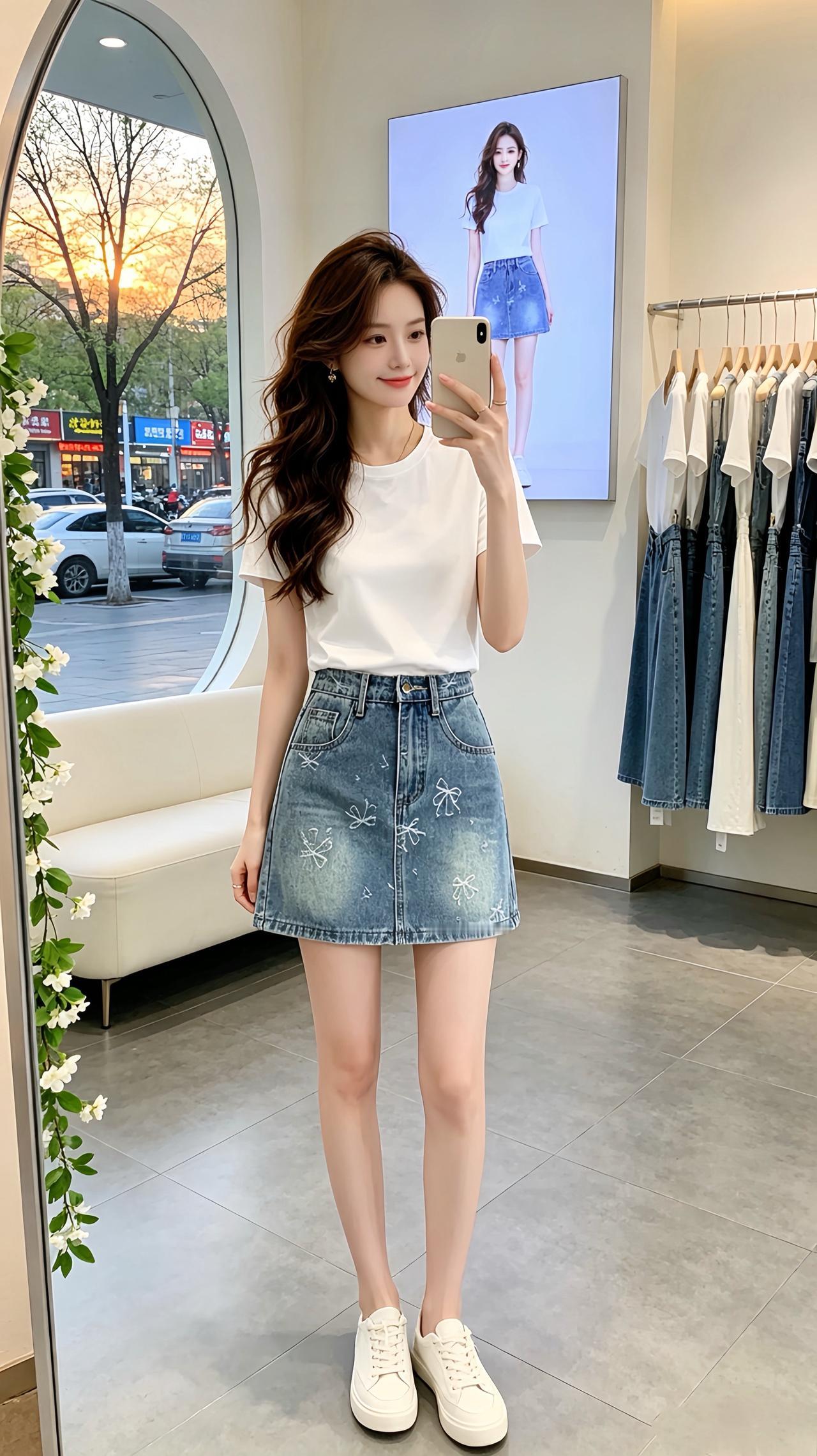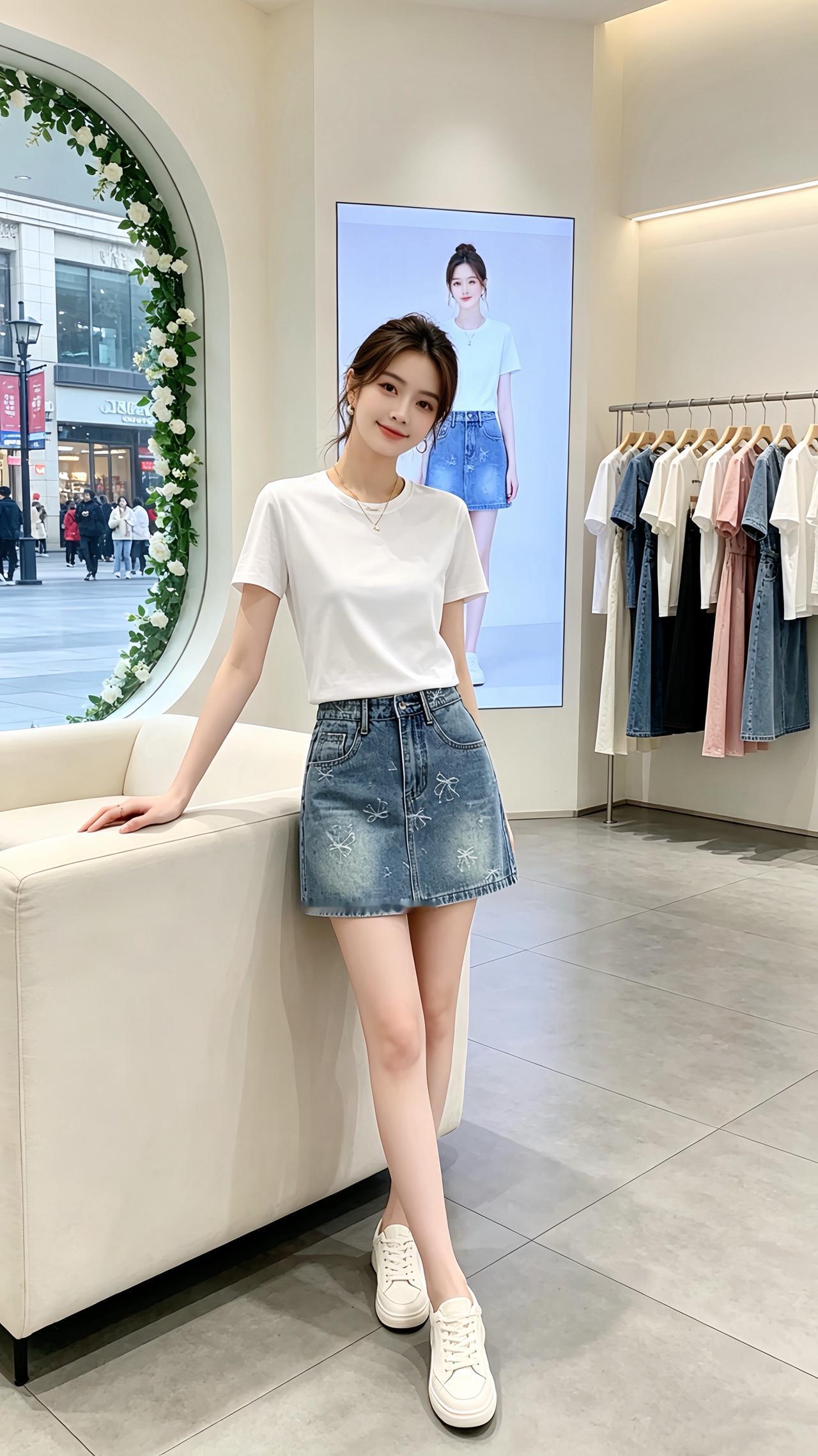清新夏日穿搭,牛仔短裙与高领T恤的完美搭配,尽显青春活力!🌞👗👠