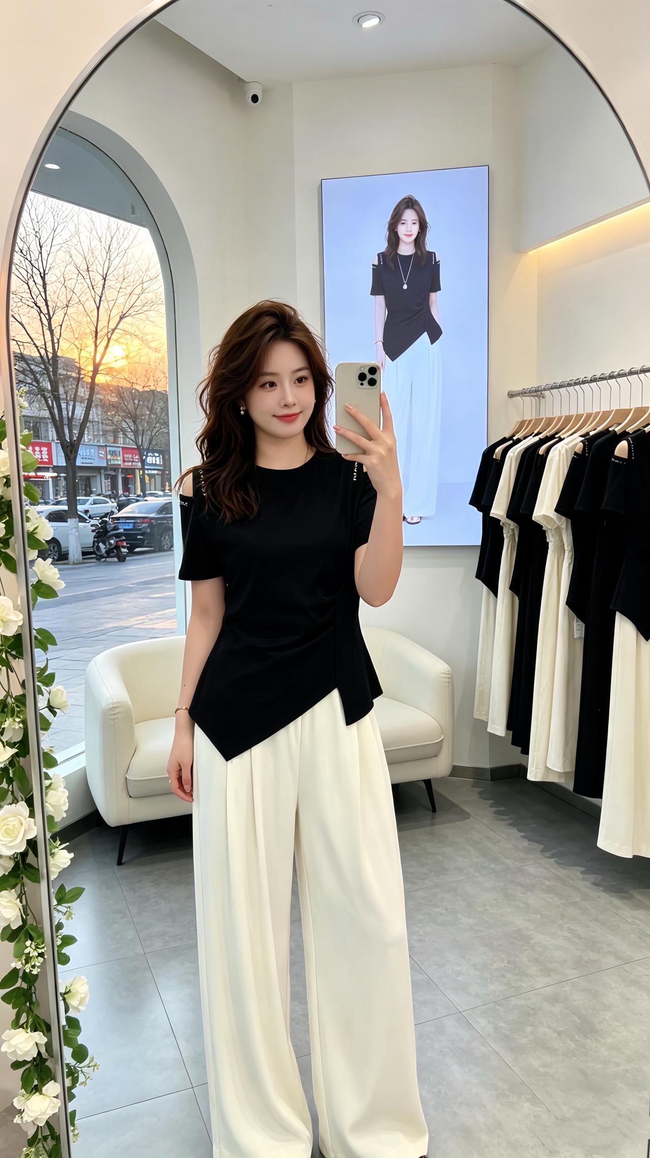 居家自拍,黑白搭配,清新自然穿搭 知性美女穿搭分享 女生怎么穿搭会看上去很优雅