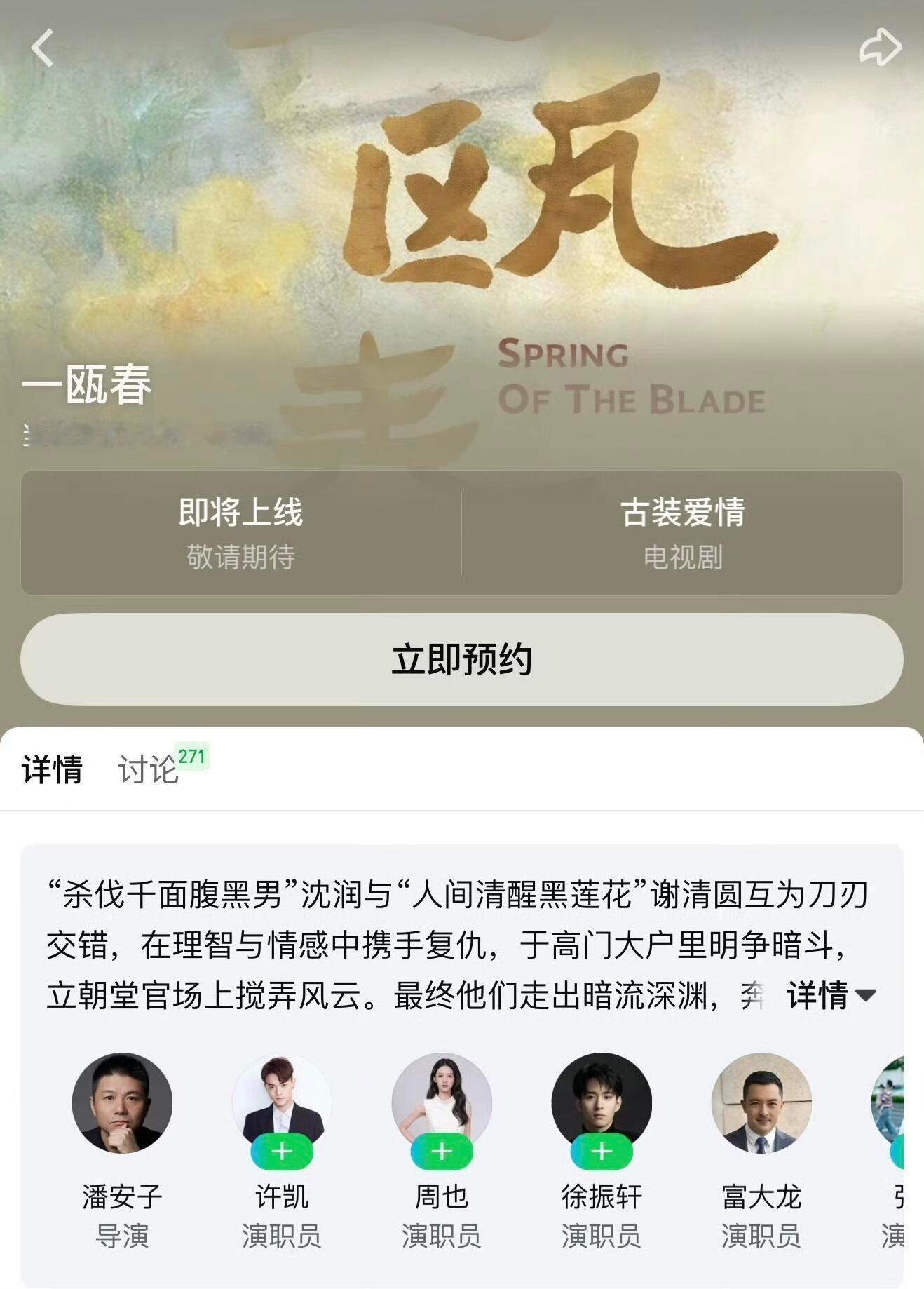许凯周也《一瓯春》暂定五月🥝播出许凯周也《一瓯春》暂定五月播出一瓯春/