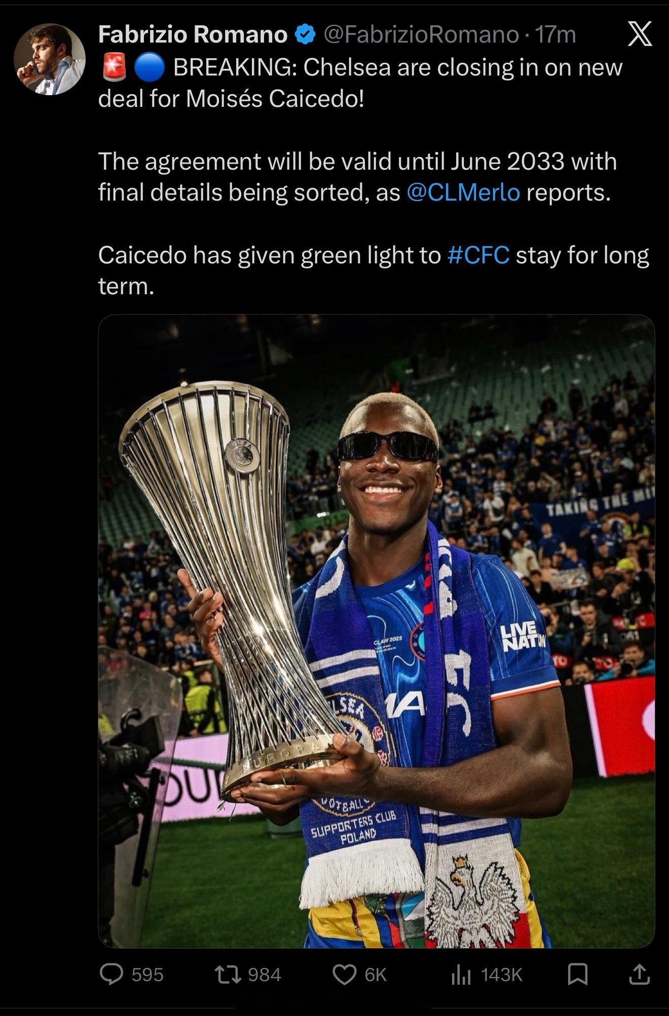 切尔西为什么每个球员都能签这么久合约?卡塞多,预计合约至2033年