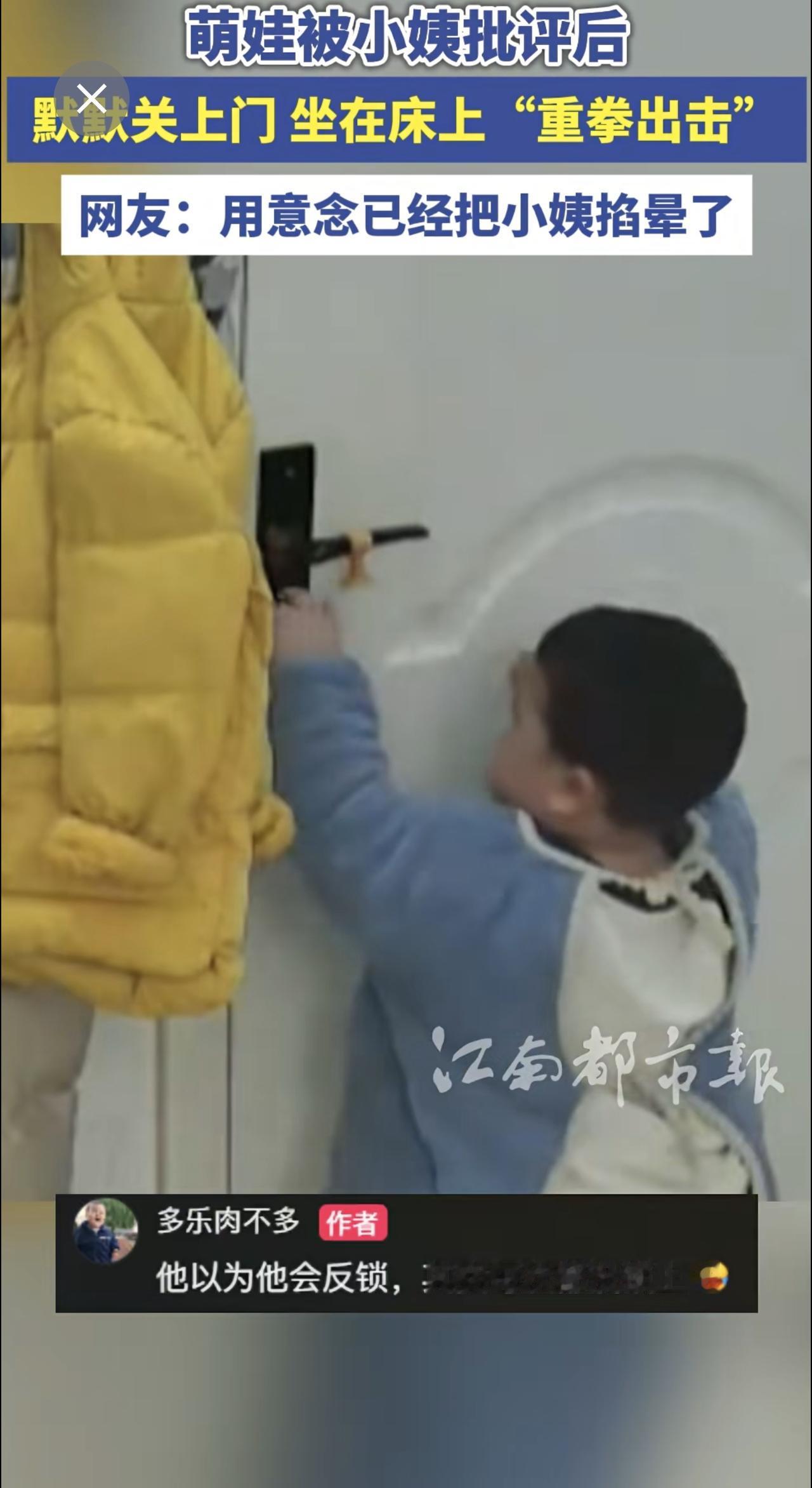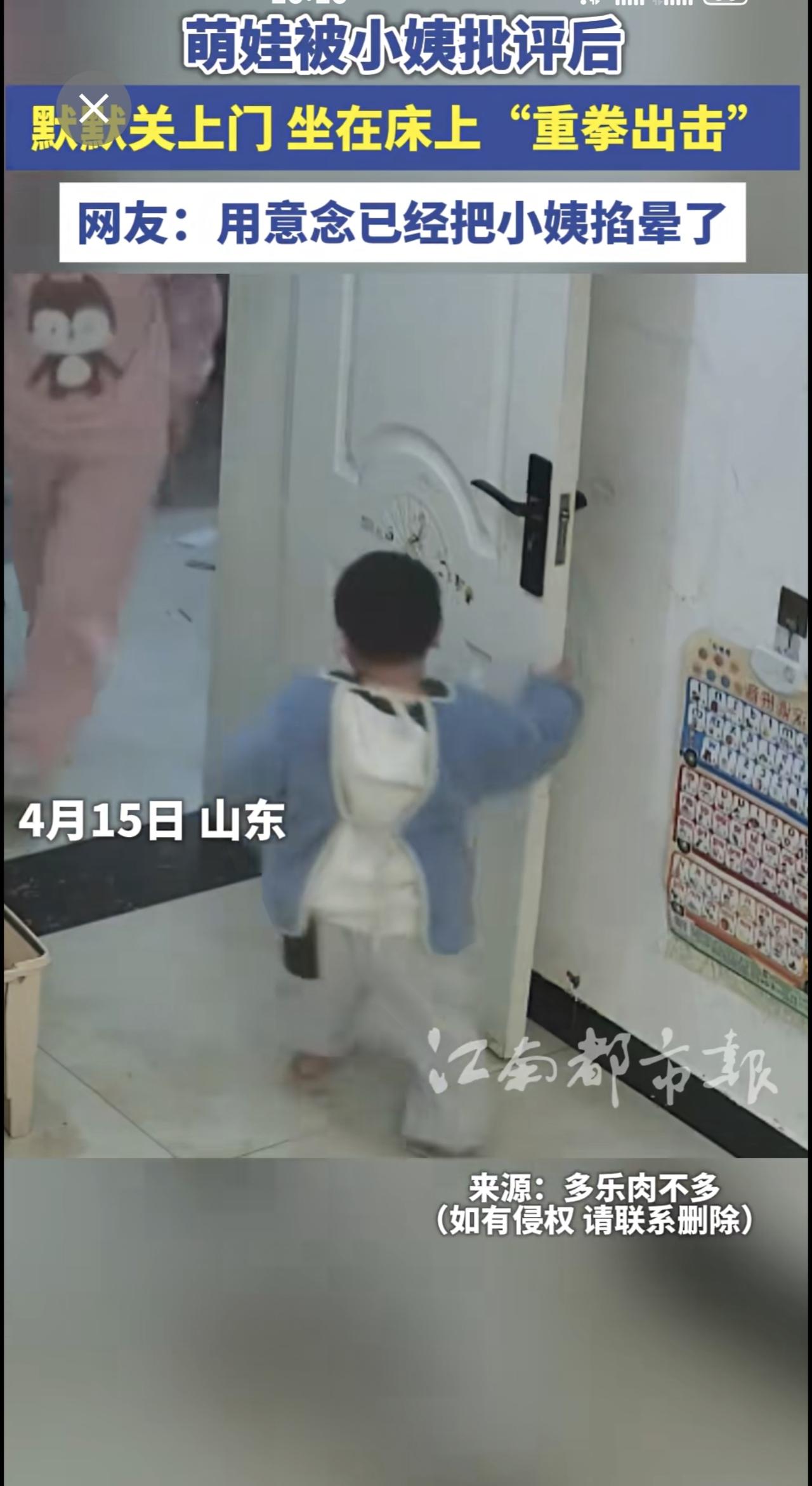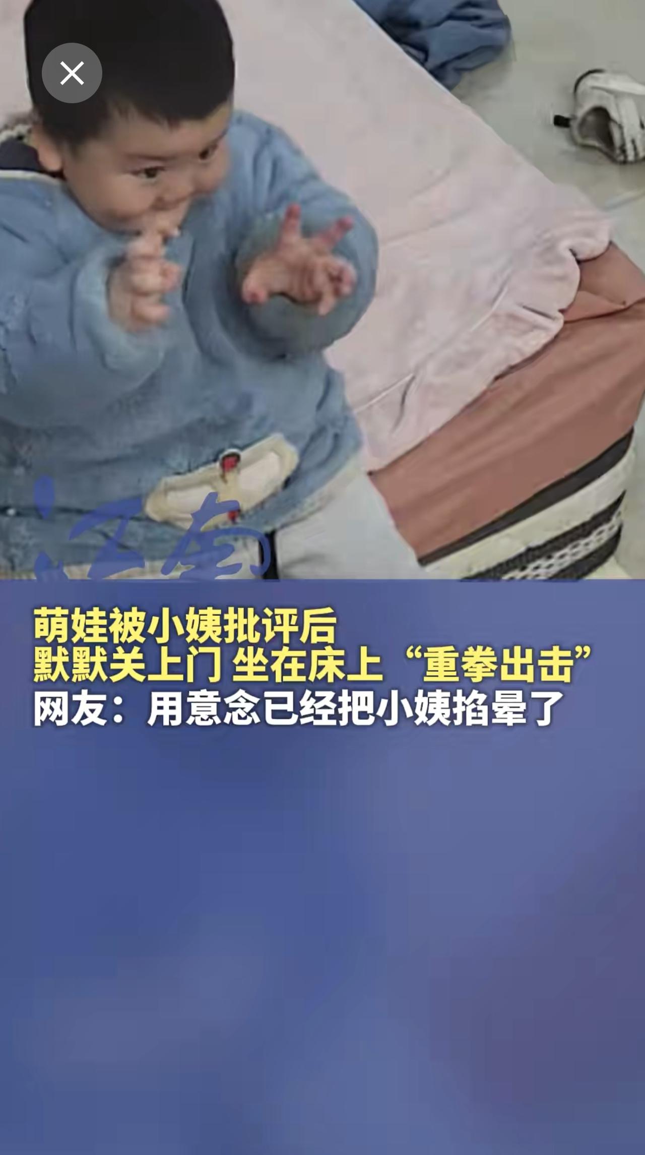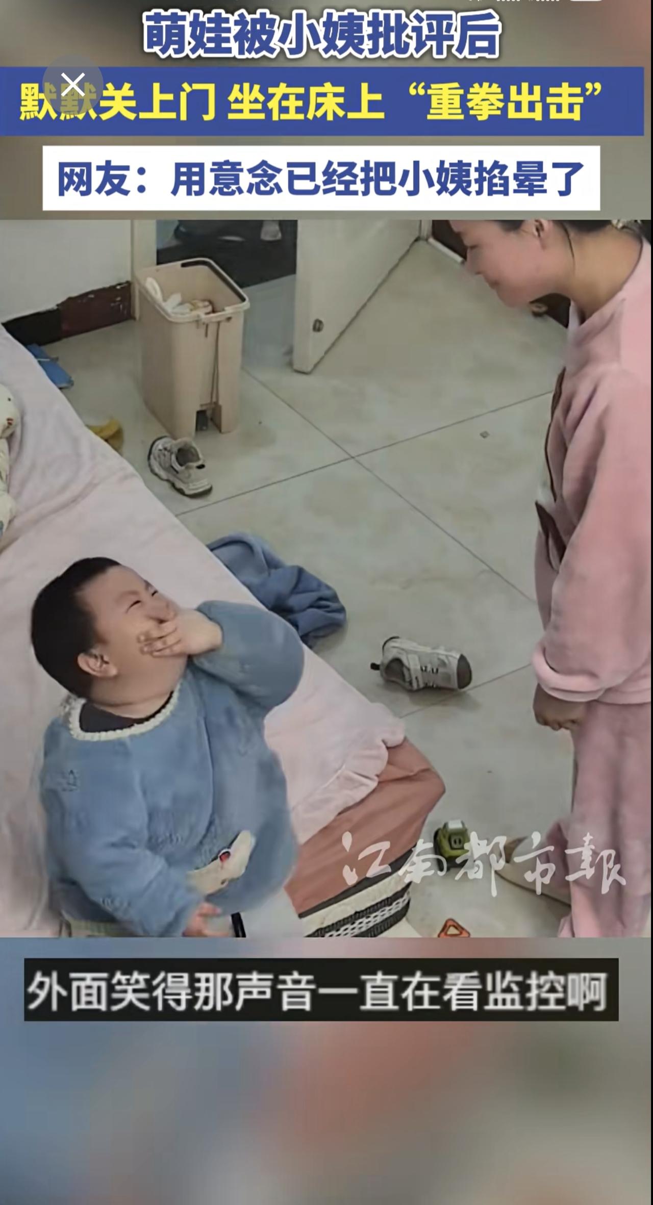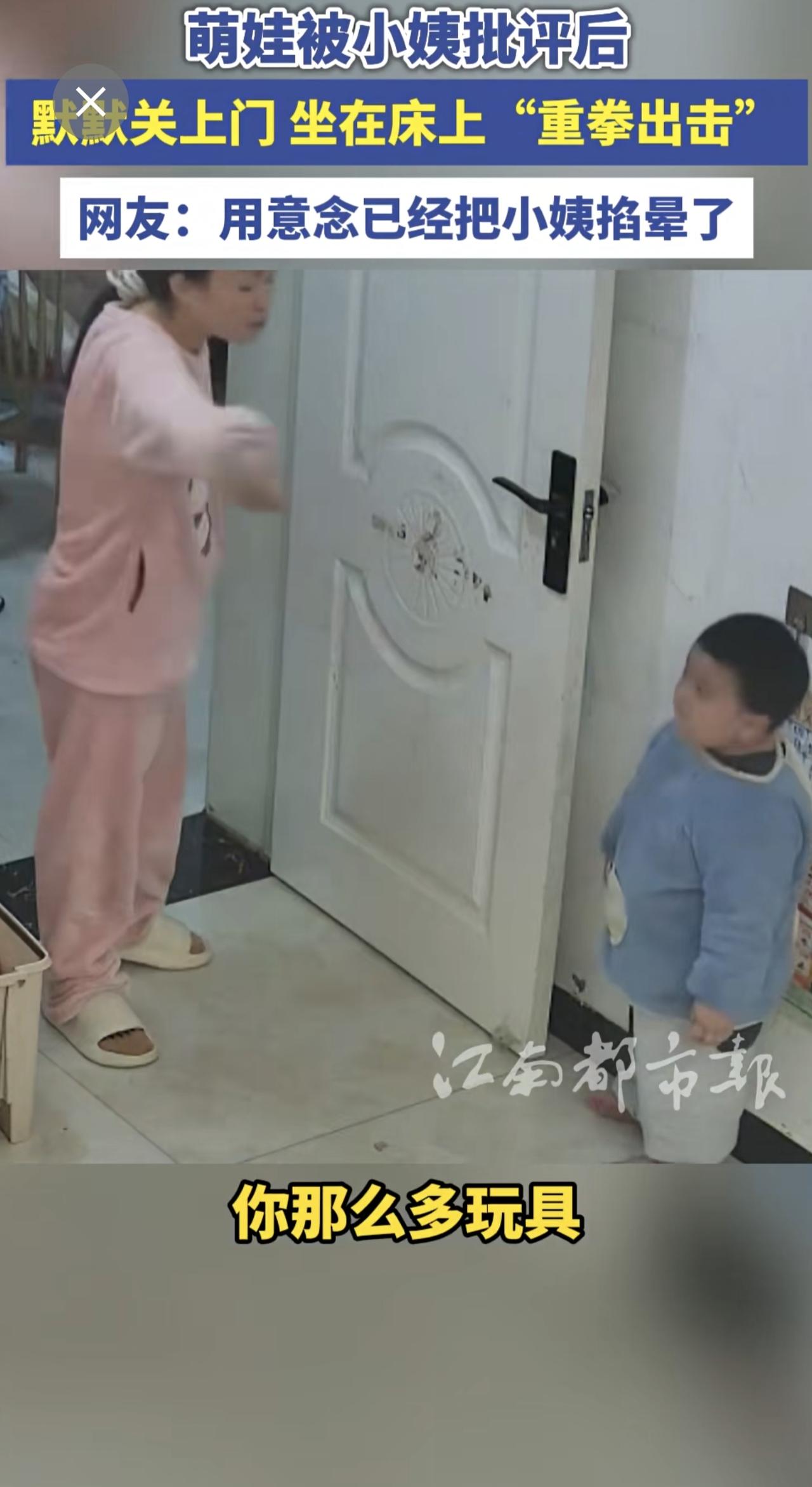 萌娃被小姨批评后,默默关上门,坐在床上“重拳出击”。网友:用意念已经把小姨掐晕了!还有这种操作 萌宝