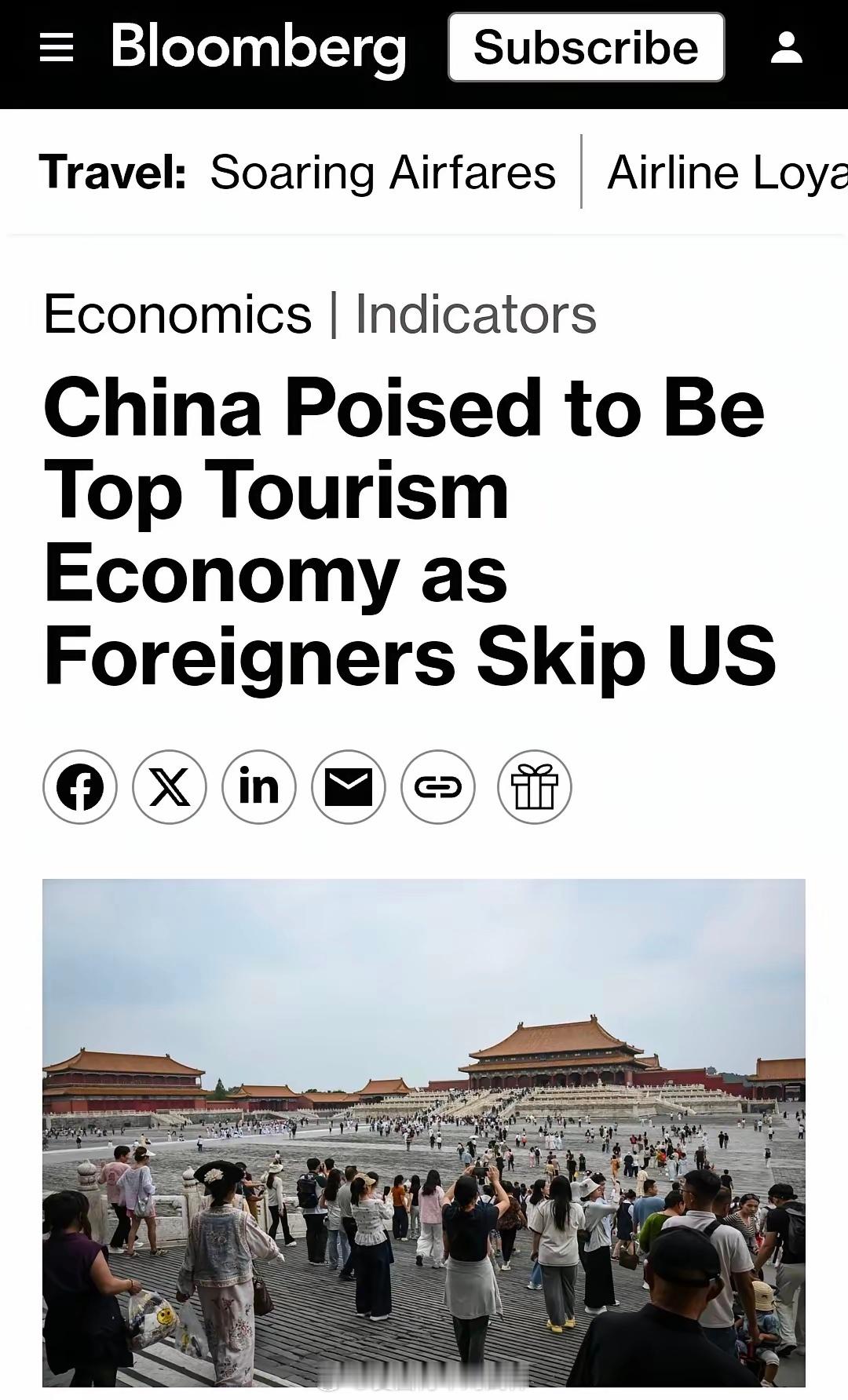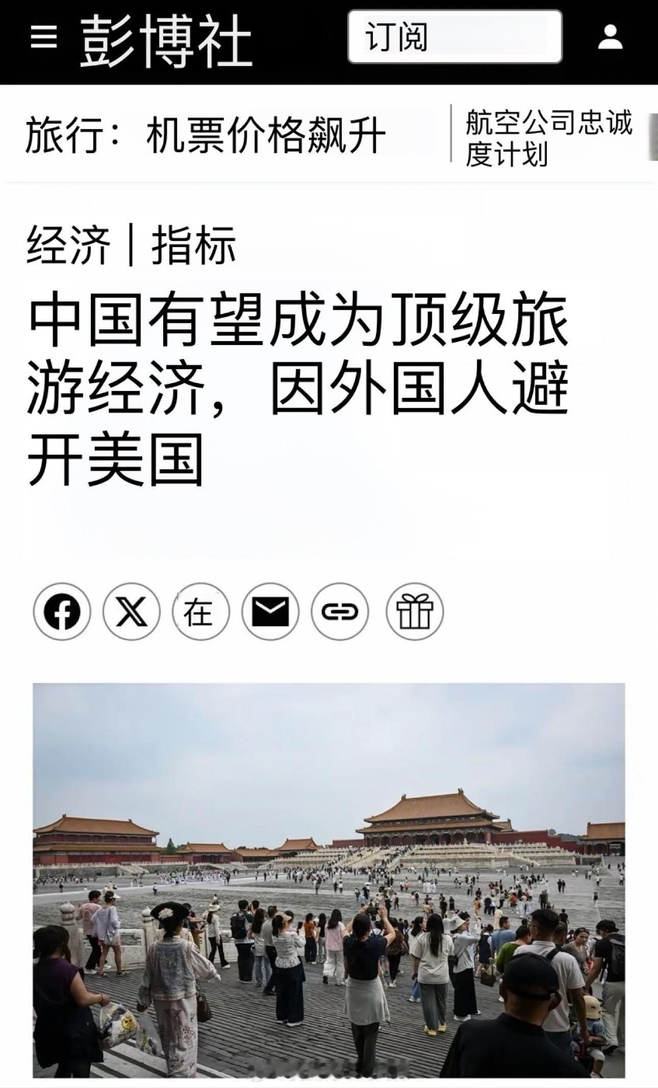 彭博社说,中国未来几年会成为世界最大旅游经济体。