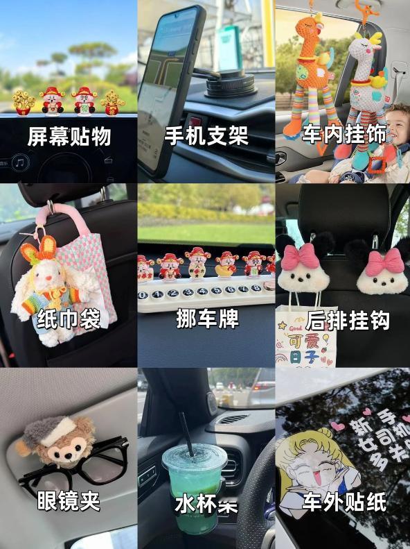 整理了一波宝藏车载好物,花小钱就能把普通代步车,改成专属可爱移动小窝🚗 实用又治愈,每次开车都像奔赴自己的小世界,心情直接起飞~ 🌟 氛围感担当|治愈感拉满 • 中控小摆件:超萌造型往中控一放,喜庆又软嫩,启动车车就像开启幸运buff🍀(温馨提示:别遮挡屏幕功能区哦) • 车内挂饰:毛绒玩偶挂在后座或后视镜,晃来晃去超治愈!长途开车瞅一眼,疲惫感瞬间减半✨ 独自带娃宝妈必入,还能轻松转移宝宝注意力,哄娃超省心 🌟 实用刚需组|好看又能打 • 手机支架:导航稳稳固定,再也不用手忙脚乱找角度!优先选吸附/磁吸款,贴在中控不占地,操作超方便📱 • 可爱挪车牌:财神造型太戳人啦🅿️ 临时停车留号码不尴尬,还能当小装饰,实用+颜值双在线 • 座椅背纸巾袋:挂在座椅背上不占空间,纸巾随拿随用,再也不用到处乱丢,车内始终干干净净🧻 • 软萌后排挂钩:公仔造型超可爱,挂包包、奶茶都超稳!再也不用堆在座椅上,担心洒漏弄脏内饰🥤 • 适配款水杯架:放奶茶、咖啡稳稳当当,开车途中想喝水不慌不忙☕️ 选卡扣牢固的,适配自己的车型才安心 • 遮阳板眼镜夹:再也不用把眼镜随手扔座位、到处找眼镜盒啦👓 夹在遮阳板上,眼镜也有专属小角落,拿取超方便 🌟 社牛小心机|车车专属标识 • 车外可爱贴纸:“新手女司机 多关照”软萌又贴心,路上司机都会温柔几分🚘 个性贴纸还能给车车换风格,秒变移动可爱宣言,回头率拉满 这些小登西花小钱就能拥有满满归属感,把普通代步车,变成治愈又实用的移动小窝💗 快挑几个,改造属于你的专属“移动城堡”吧~【来自懂车帝车友圈】