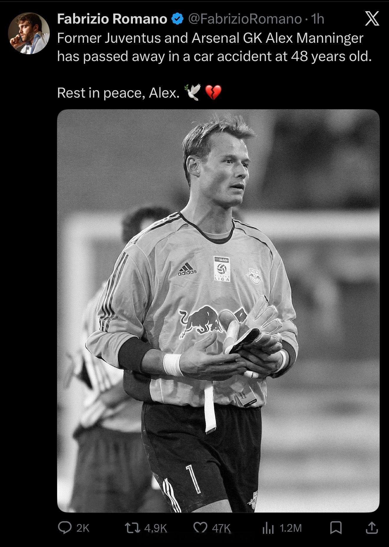 前尤文、阿森纳门将车祸不幸去世🕯️