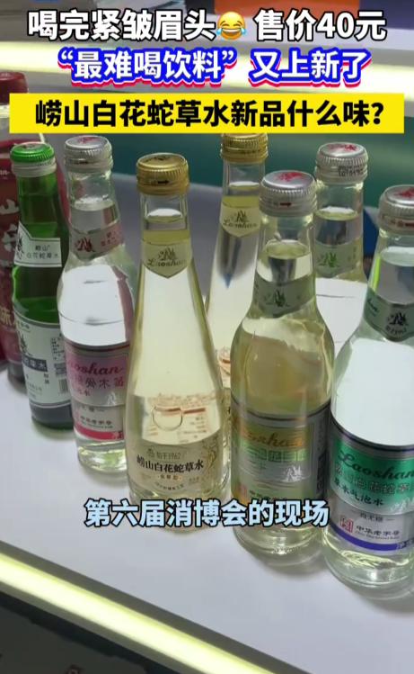 喝一口眉头紧锁!40元一瓶,“最难喝饮料”又上新了😱 号称“最难喝饮料天花板”的崂山白花蛇草水,居然在消博会推出新品了!这款新品定价40元,不少人尝过之后直接眉头紧皱,味道依旧很“上头”。 作为网红难喝饮料代表,白花蛇草水每次出新都能引发热议,这次新品更是凭借奇特口感和偏高定价,再次成为大家讨论的焦点。 好奇它到底是什么奇葩味道?敢挑战的朋友可以去试试,不过做好“皱眉”准备哦!
