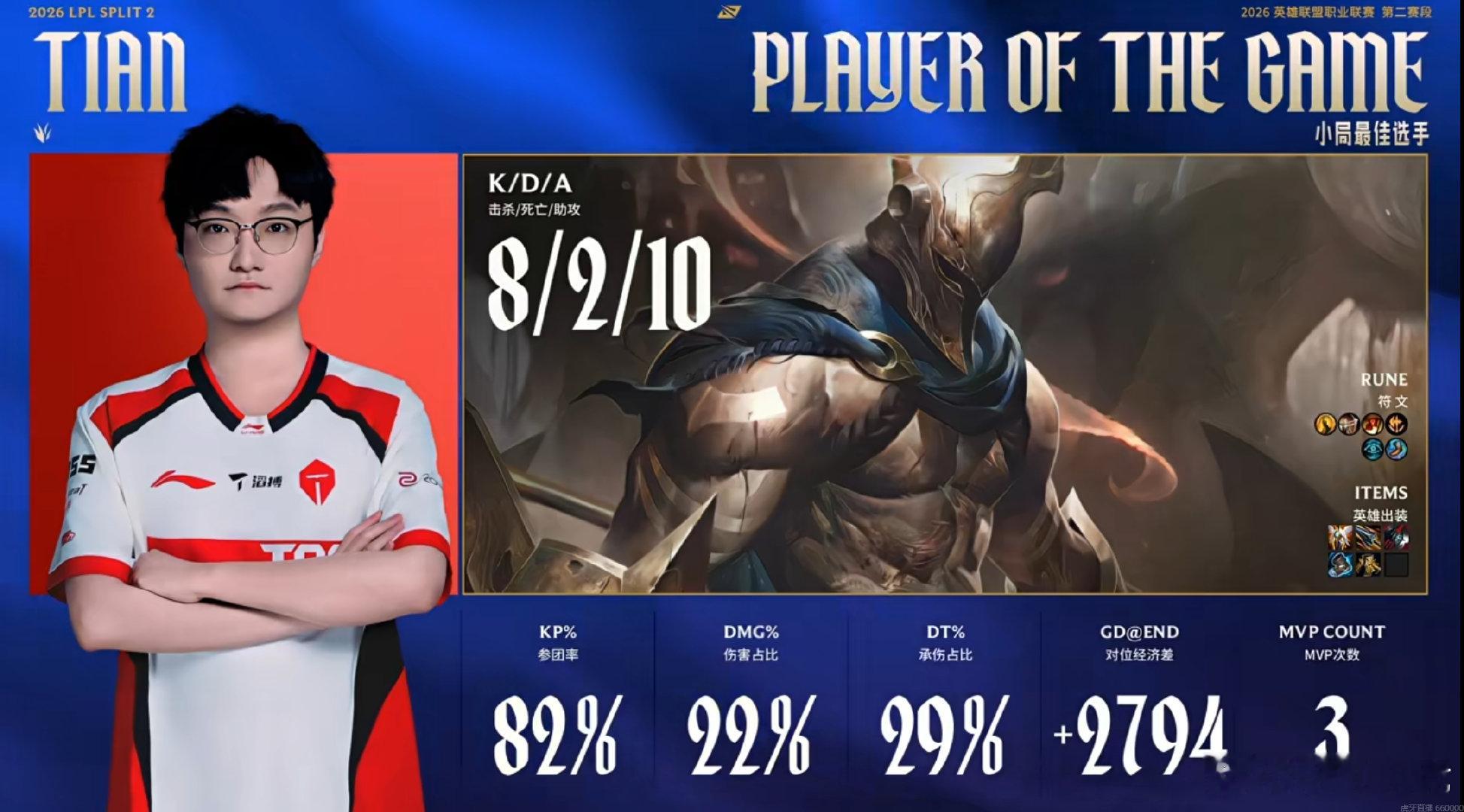 本局MVP给到了Tian!