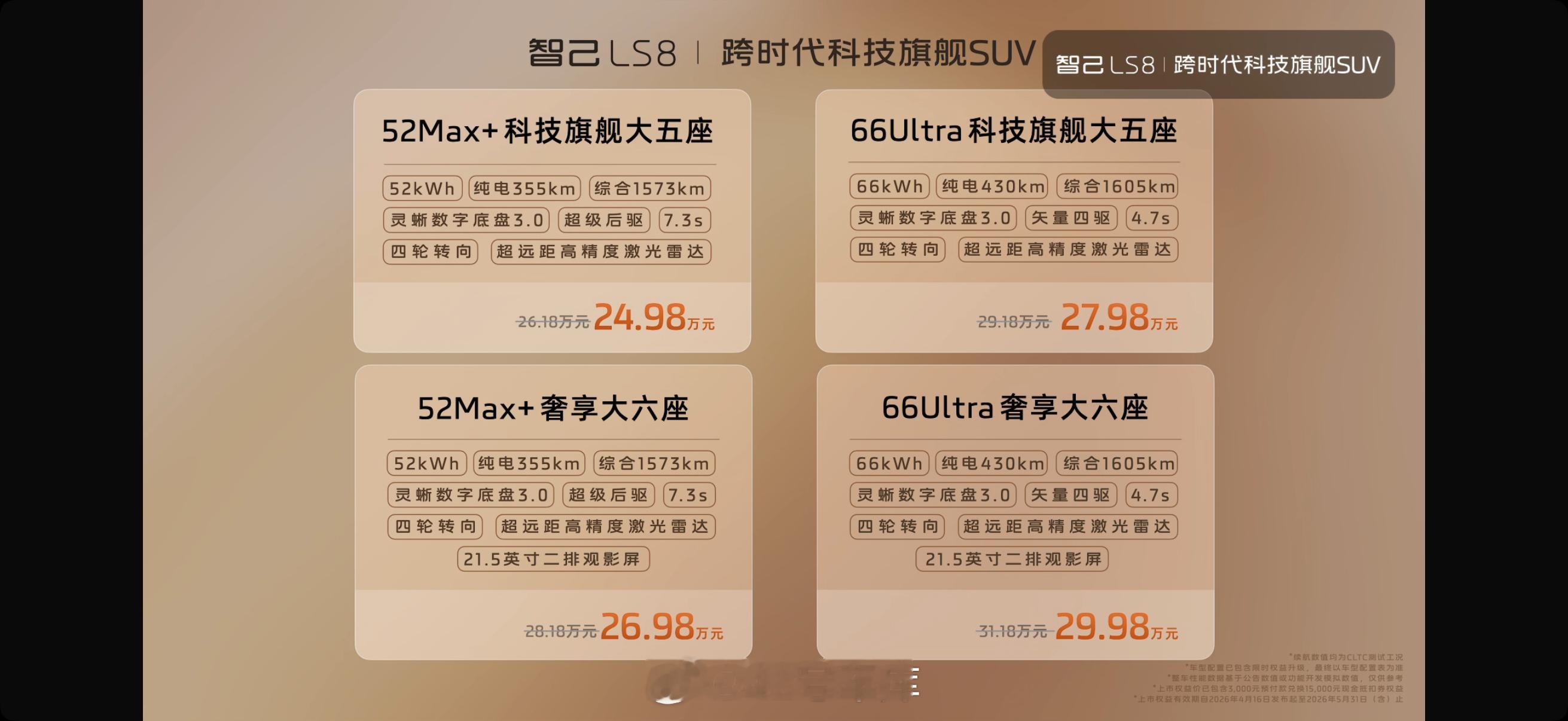 智己 LS8 公布了上市权益价格 24.98 - 29.98 万元,4 月 20 号开始交付