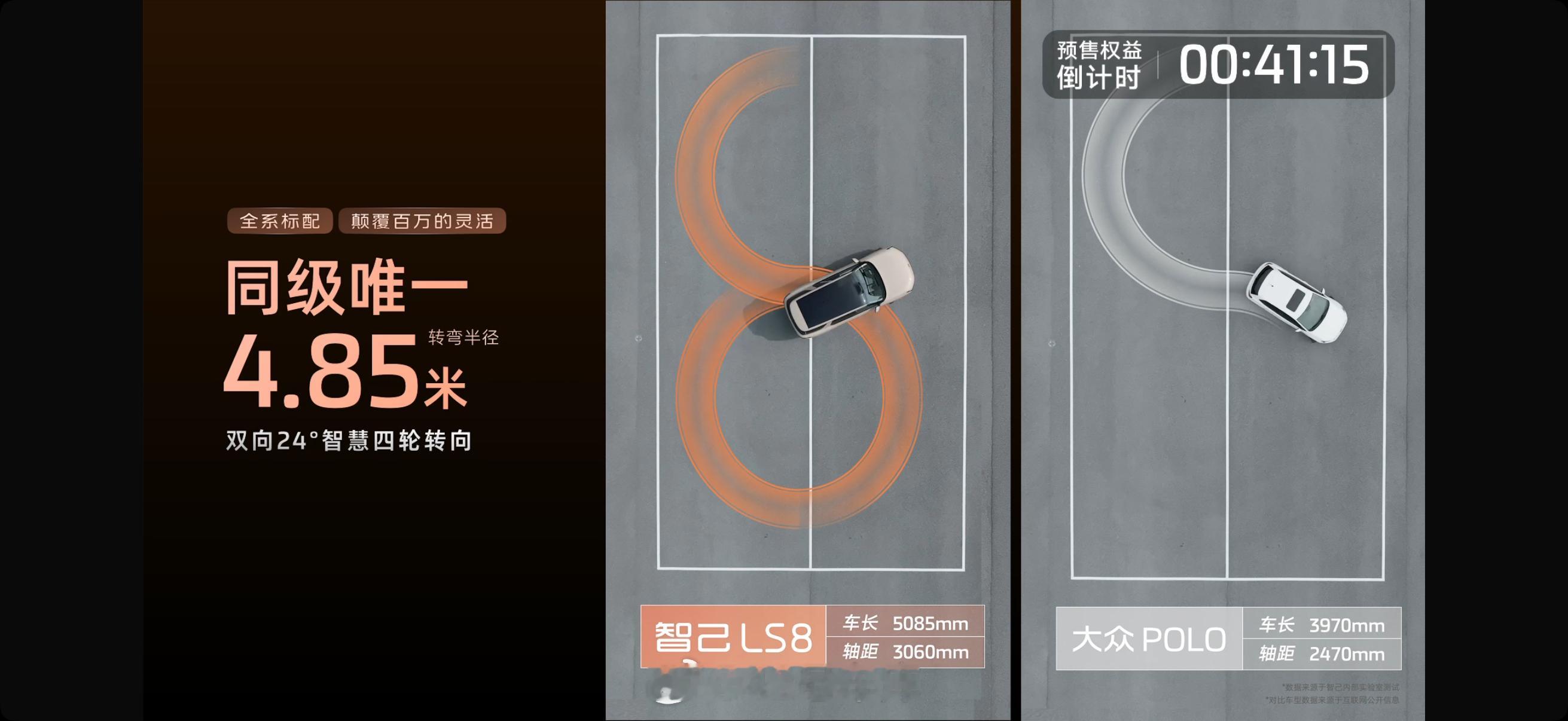 全线控四轮转向车型的价格来到了 30 万以内,五米长的 SUV 转弯半径比大众 POLO 小