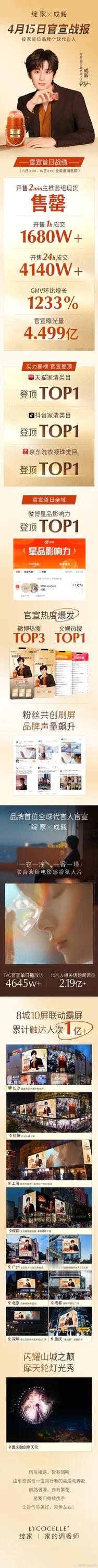 成毅昨天官宣的绽家战报来了,首日14h成交额超4140w什么水平?