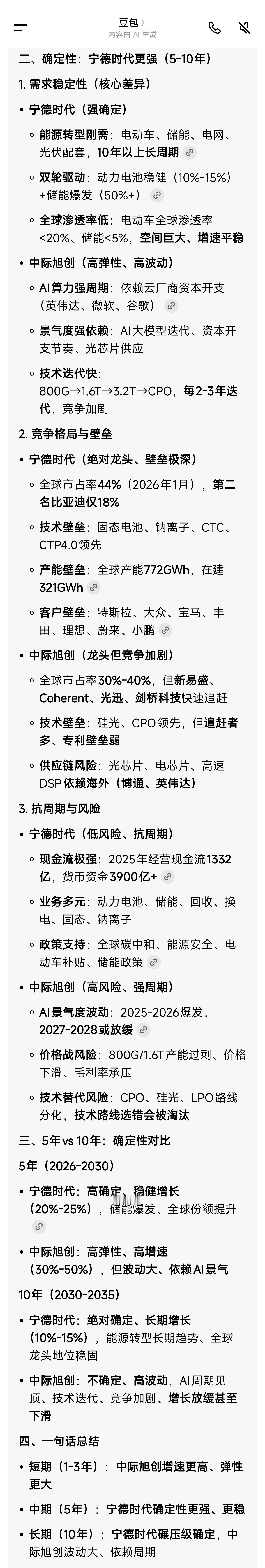 长期(10年):宁德时代碾压级确定,中际旭创波动大、依赖周期
