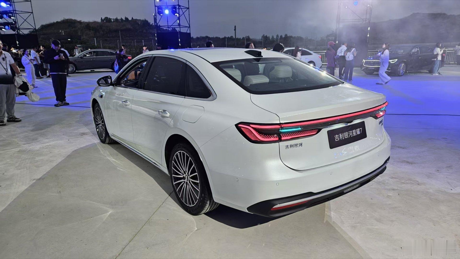 外观方面还是银河家族“涟漪美学”得设计语言,不过在辨识度方面,发光中网绝对赢了,而且这台车也是吉利银河首款搭载四驱的中级电混轿车。