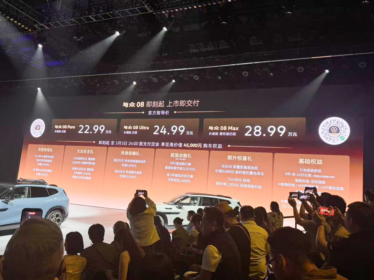 与众08上市,3个版本,价格区间22.99万-28.99万,作为大众与小鹏汽车合