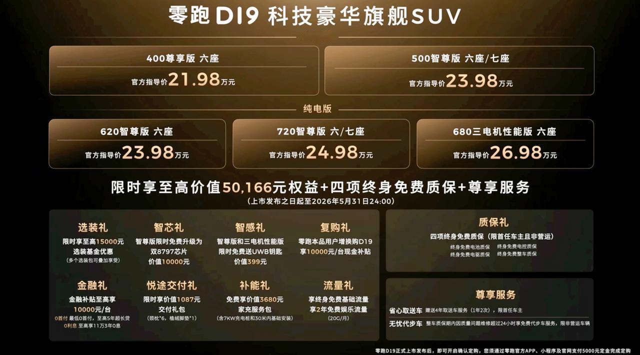 这价格大三排SUV市场迎来一位强劲的选手零跑D19售价21.98万-26.98万
