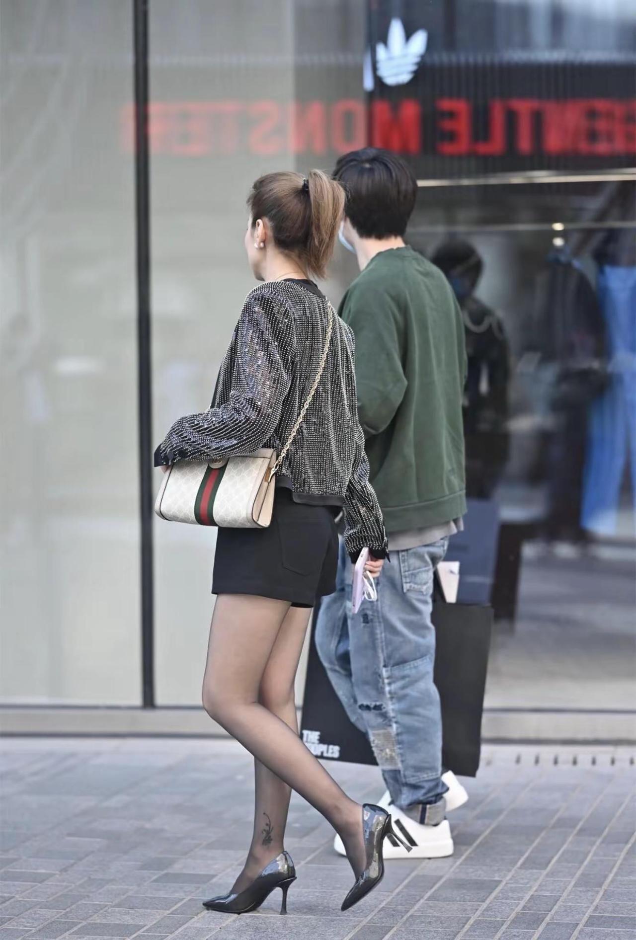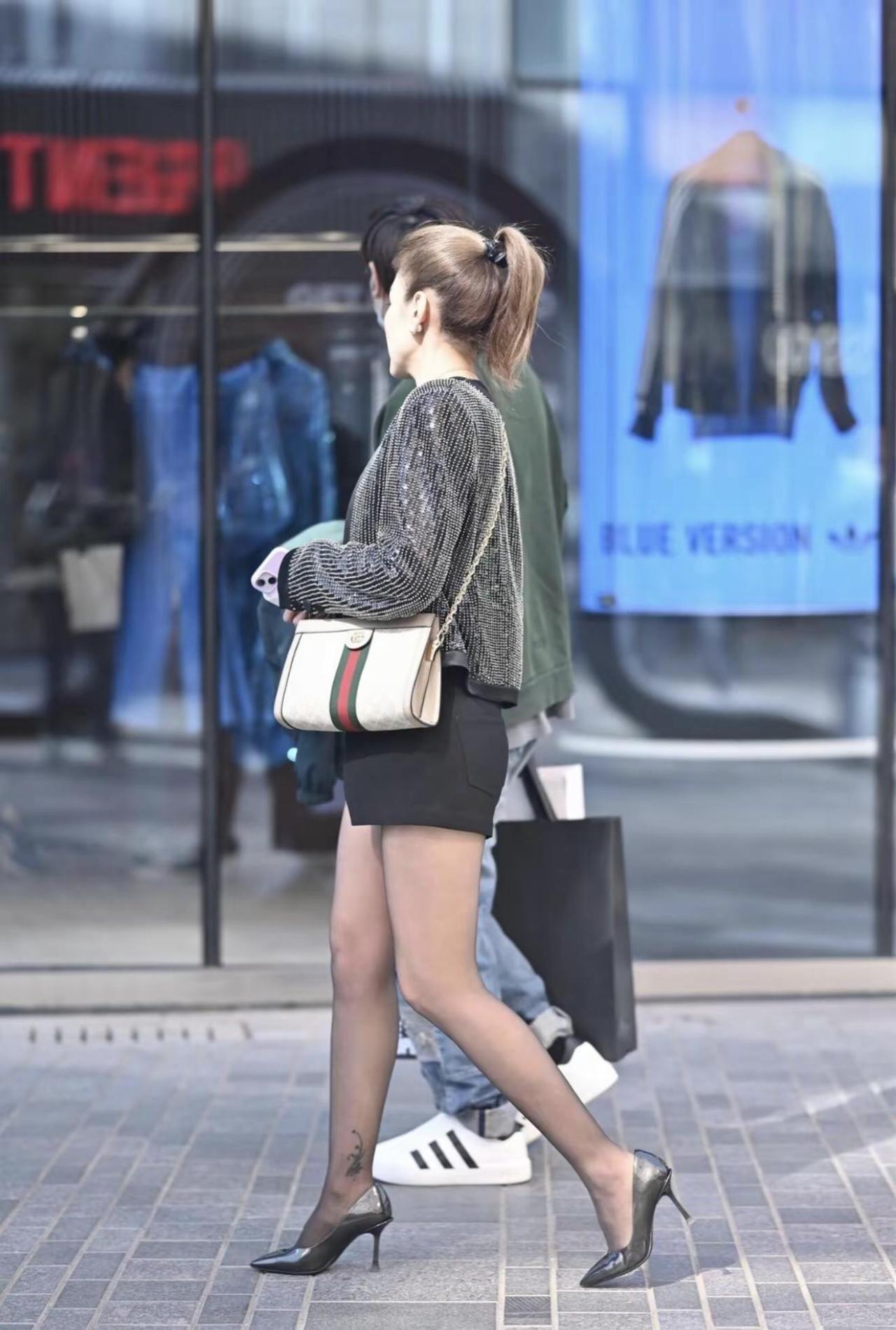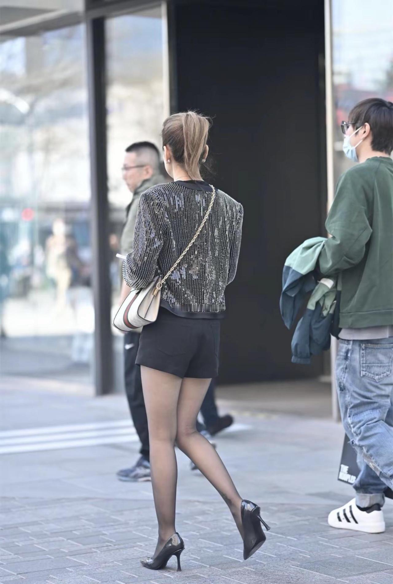 初春的寒,黑丝的暖。细高跟很像一位女明星