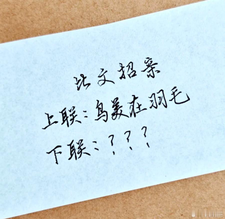 假如穿越到古代比文招亲现场,肚子里没点墨水可不行。考考你,上联:鸟美再羽毛。请对下联,看谁对的最好。