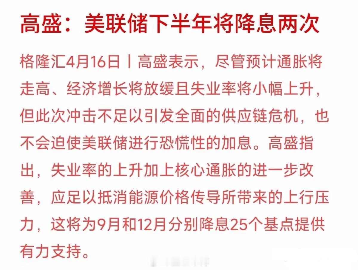 A 股刚站上 4055 点创新高,高盛就送来个大礼包:美联储下半年可能要降两次息!很多人盯着美联储的脸色过了一整年,这下总算有盼头了。高盛预测 9 月和 12 月各降 25 个基点,虽然这累计 50 个基点看着不算多,但对咱们 4000 点上方的 A 股来说,这可能就是冲向更高位置的“最后一级火箭”。逻辑其实很直白:老美那边一降息,咱们这边的利差压力就小了,外资回流抢筹的底气会更足。你想想,现在国内 AI 和新能源已经热起来了,要是下半年再来一波全球流动性的“助攻”,这波行情的高度可能真要超出不少人的预料。投资讲究的就是个预期。现在风已经往这边吹了,你手里的票准备好接住这波“外资礼包”了吗?你觉得美联储这波降息会准时到吗?