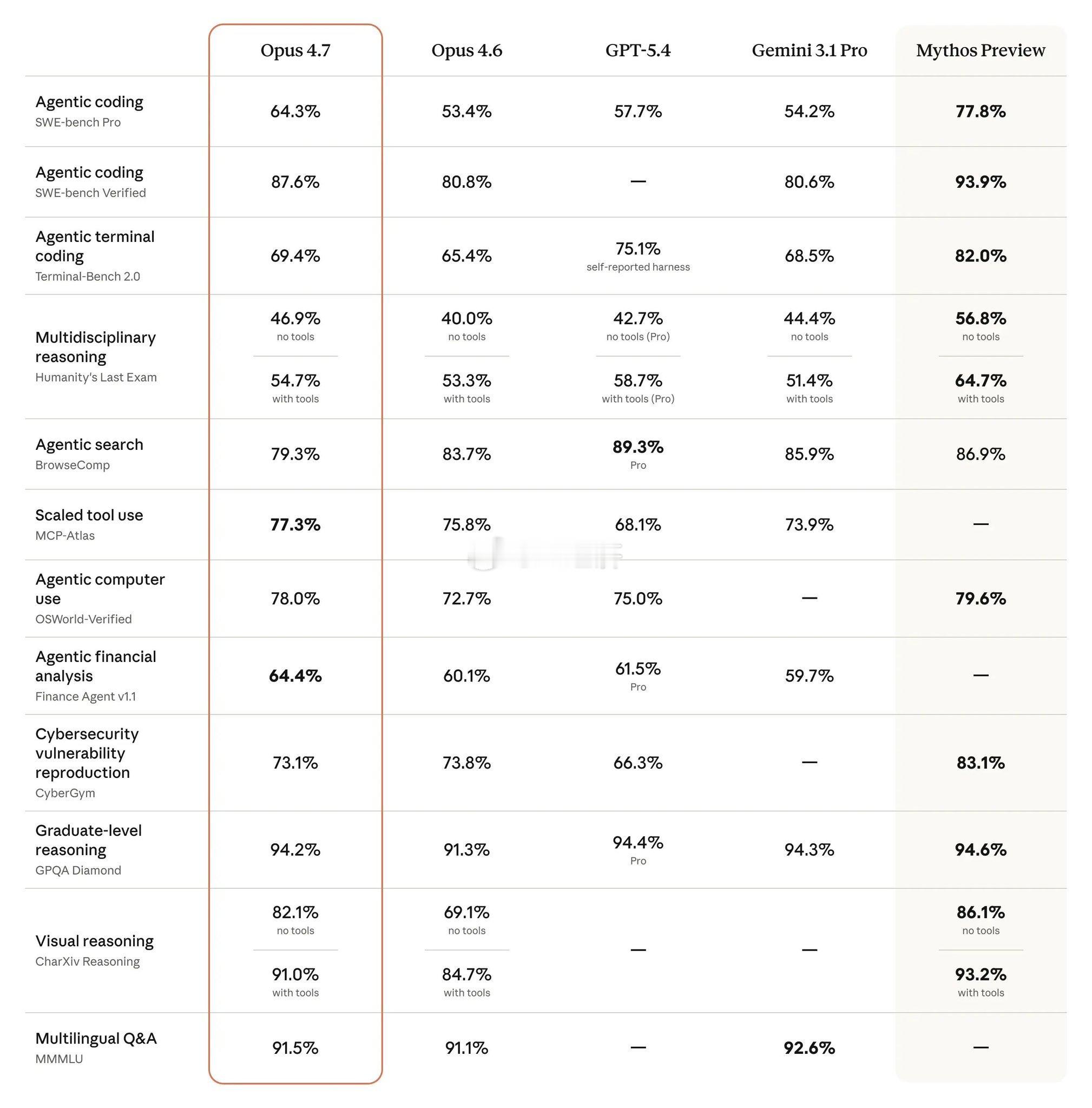 来了!Anthropic 发布了 Claude Opus 4.7 模型,主要更新如下: