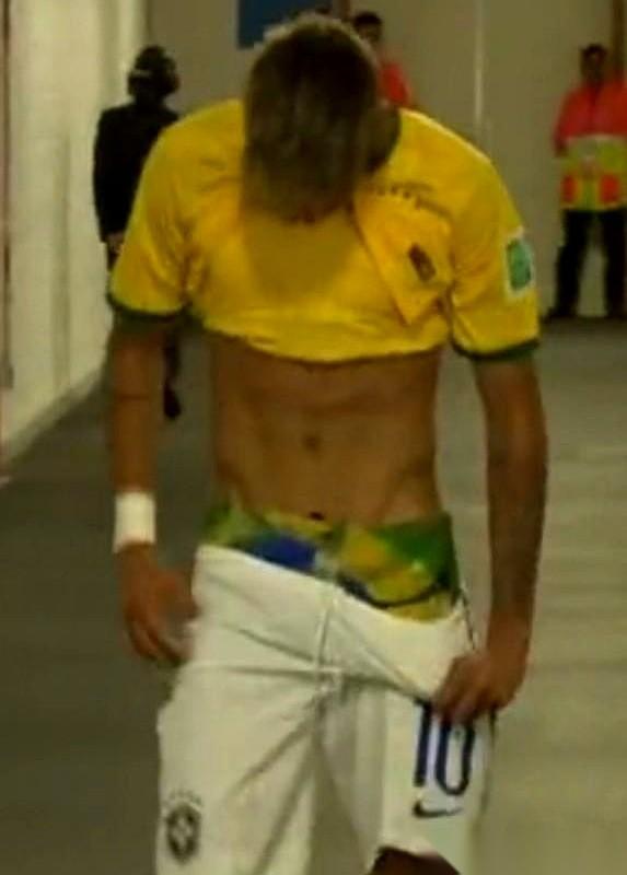 内马 撩个上衣就行了 裤子也要往下扯一下?