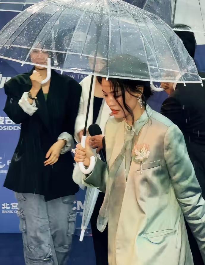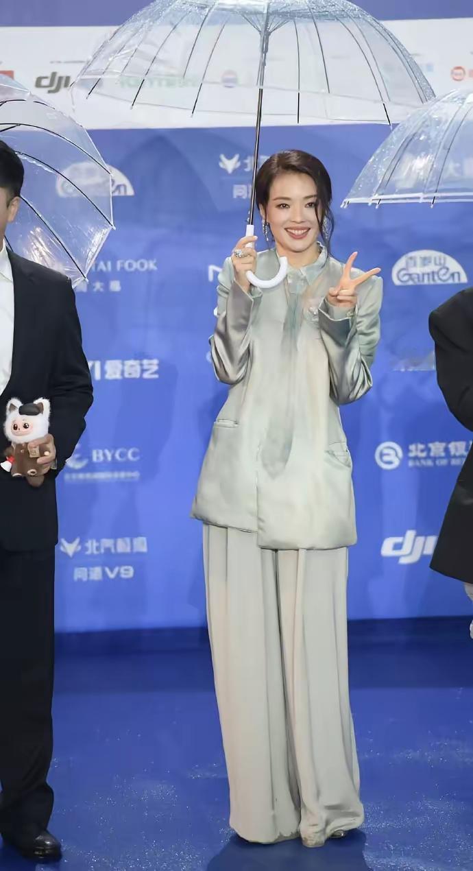 2026年4月16日,舒淇现身北京国际电影节红毯。 她一身冰蓝缎面西装,自带清冷贵气,雨中撑伞的画面氛围感拉满,又飒又美,松弛感直接封神!