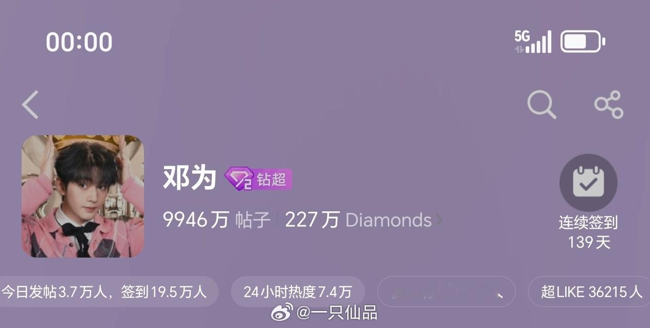 邓为超话昨日发帖3.7万+,超like3.6万+钻石们牛比,期待邓为央视五四晚会,期待邓为云秀行